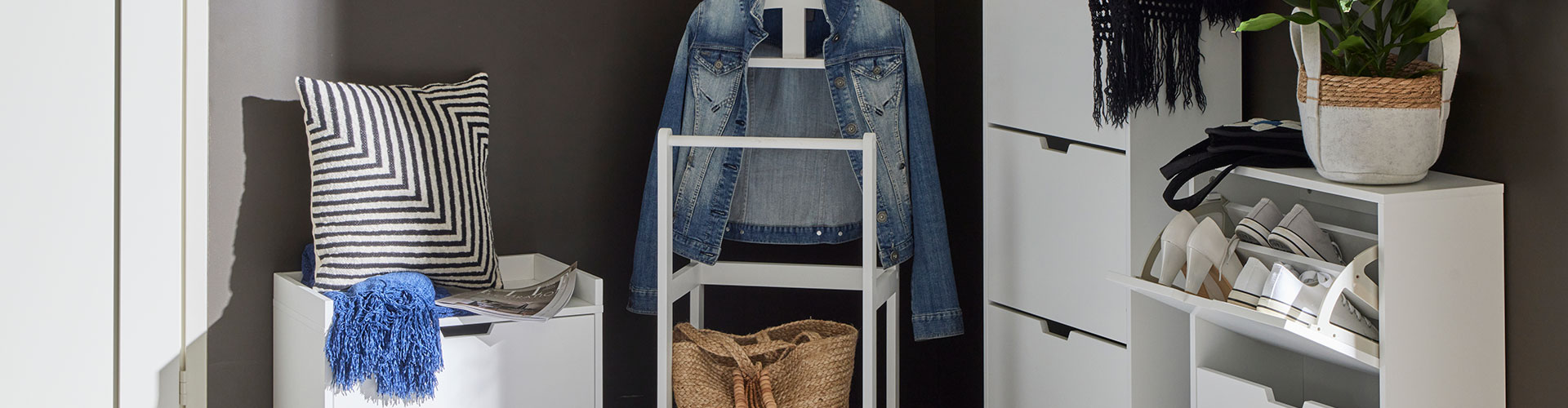 Kapean eteisen valinta on vain 45 cm syvä vaatekaappi