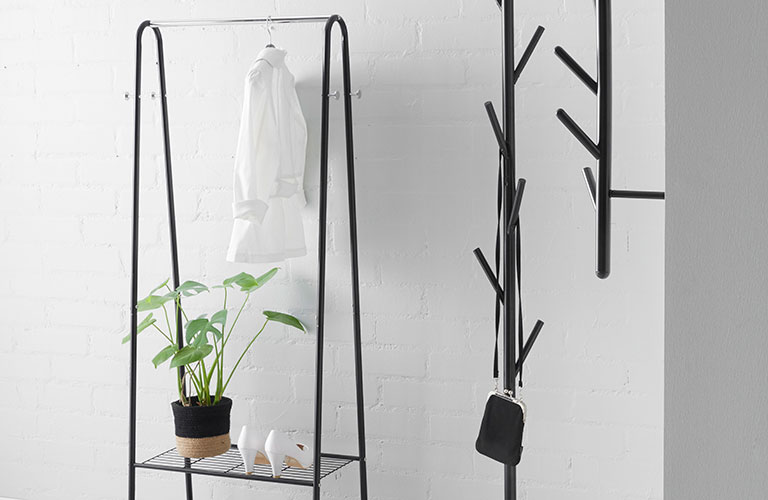 Kun lattiatila on rajallinen, seinätilan hyödyntäminen on tärkeää. Seinähylly on loistava ratkaisu, sillä se tarjoaa säilytystilaa ylhäällä, jättäen lattiatilan vapaaksi. Voit sijoittaa hyllylle korit tai laatikot, joihin voi säilöä kausitavaroita. Naulakko tai vaateteline taas tuo tilaa takkien ja laukkujen säilytykseen, ja voit valita esimerkiksi kokoontaitettavan version, joka vie vähemmän tilaa tarvittaessa.