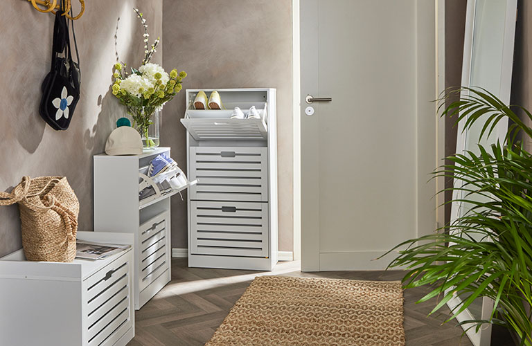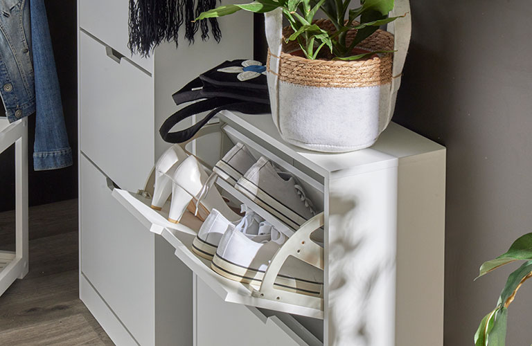 Eteisessä tarvitaan usein tilaa kengille ja ulkovaatteille. Kenkäteline on kompaktimpi vaihtoehto kuin suurempi kenkäkaappi, ja se voi olla kätevä valinta pieneen tilaan. Mikäli tilaa kuitenkin löytyy hieman enemmän, vaatekaapit tai kapeat hyllyt ovat ihanteellisia tavaroiden piilottamiseen katseilta.
