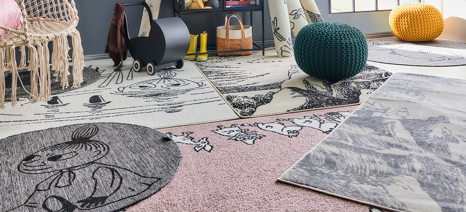 Kukaan ei määrää, että vain lapsilla saisi olla kivaa! Laadukkaat Muumi-matot sopivat yhtä hyvin kodin käytäville, nuorten makuuhuoneeseen tai wc:n piristykseksi, jonne hillityn väristen mattojen seuraksi sopivat iloisen värikkäät Muumi-pyyhkeet. Mustavalkoisuus sekä tyylikäs harmaa sopivat useimpiin sisustustyyleihin. Voit yhdistää mattoihin tyylikkäitä grafiikkavedoksia tai pelkistetysti muotoiltuja huonekaluja ja antaa itsellesi hetken irti aikuisten arjesta.