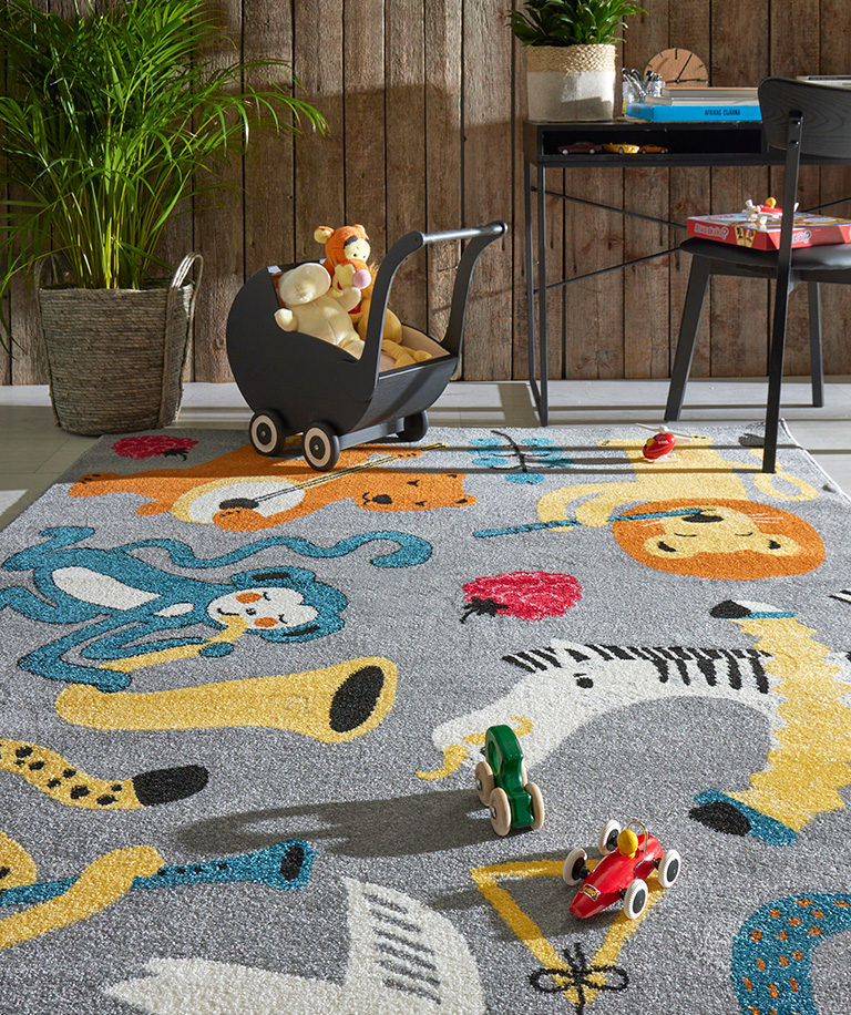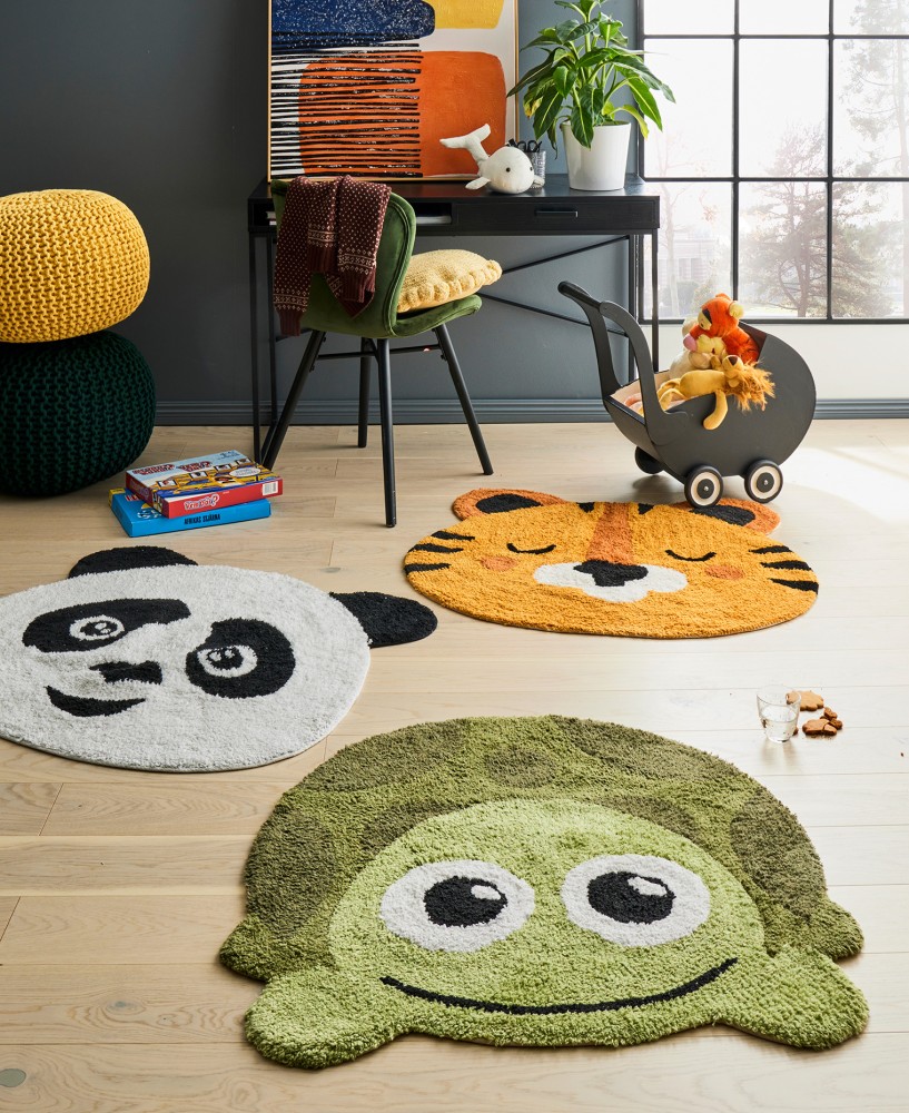 Jos kaipaat lastenhuoneeseen enemmän väriä, valitse vauhdikas Swengi-matto, jonka on suunnitellut Eveliina Netti. Hän kertoo saavansa inspiraationsa mm. tarinoista ja saduista, hulluista yhteensattumista, kauniista väriyhdistelmistä sekä mukavien eläinten kohtaamisista. Ja tätä kaikkea Swengi-matossa onkin tarjolla. Svengaavan eläinorkesterikuvituksen juju on siinä, että se tuntuu olevan oikein päin aina, mistä vain suunnasta sitä katsookaan. Iloisen raikas matto tuo väriä hillitympään sisustukseen, mutta sopii myös mainiosti lähes mihin tahansa tehosteväriin. Poimi matosta omasi ja ripottele huoneeseen raikkaita väriläiskiä vaikkapa keltaisilla valaisimilla ja koristetyynyillä.