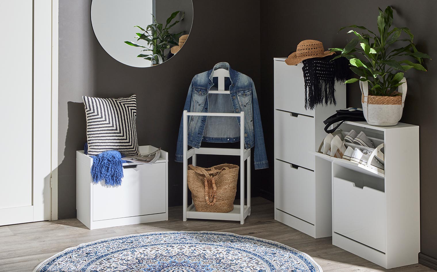 Arvostatko arjen helppoutta? Sopiva vaatekaappi auttaa sinua järjestämään tärkeimmät tavarasi. Kodin järjestys alkaa toimivista säilytysratkaisuista. Arki sujuu, kun tärkeimmille tavaroille ja vaatteille on oma paikkansa. Hyvän suunnittelun avulla löydät juuri sinulle sopivan säilytysratkaisun. Valitse vaatekaappi aina tilan koon ja käyttötarpeen mukaan. Aloita mittaamalla tila. Muista huomioida riittävä liikkumatila kaapin eteen. RT-ohjeistuksen mukaan optimaalinen liikkumatila kaapin edessä on vähintään 60–90 cm.