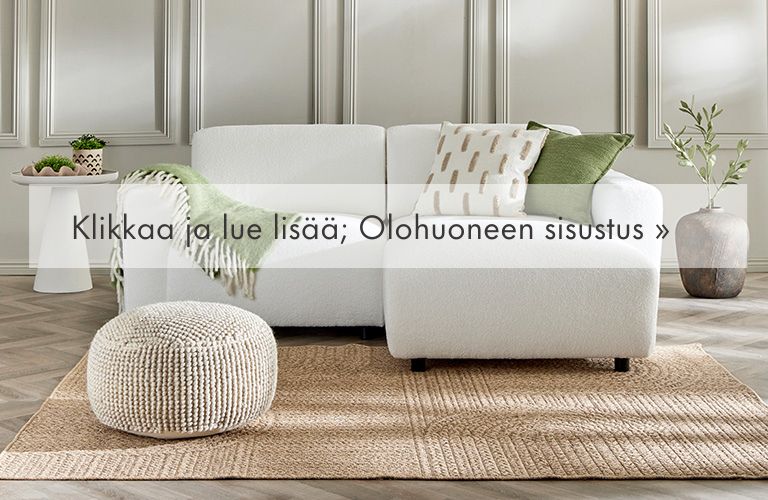 - Mittaa ensin olohuoneen koko, sohvan leveys ja syvyys, sekä muut kalusteet. Mieti, mitkä kalusteet tulevat maton päälle ja mitkä jäävät sen ulkopuolelle esim. lipasto, tv-taso ym.