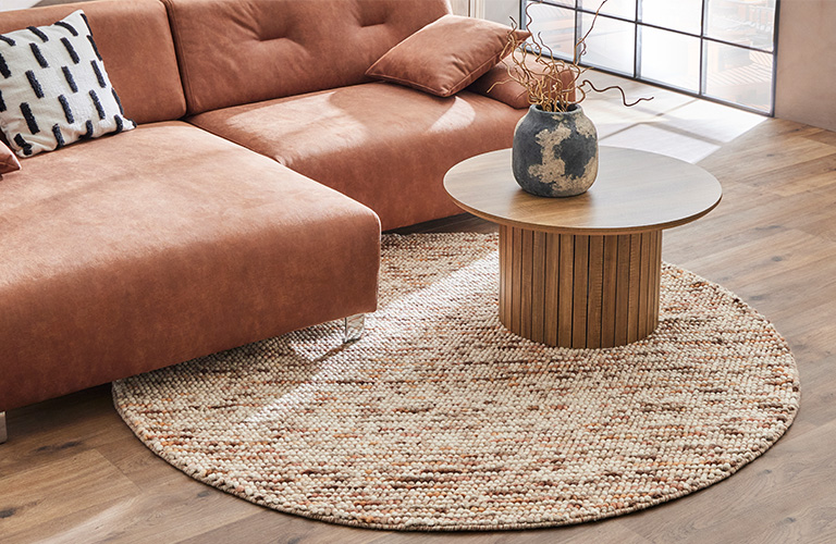 - Pyöreä matto sopii kulmasohvan eteen tai nojatuoliryhmän alle. Valitse tässäkin mieluummin suurempi, kuin liian pieni matto. Pyöreällä matolla saa hetkessä pehmeyttä sisustukseen, jossa on muuten paljon teräviä kulmia.