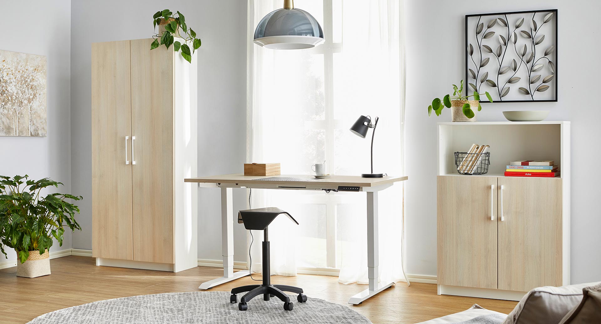 Työhuoneen sisustus vaikuttaa työskentelyn mukavuuteen, työtehokkuuteen ja työpäivän sujuvuuteen. On tärkeää valita kotitoimistoon ergonomiset ja laadukkaat huonekalut, kuten työpöytä ja työtuoli. Oikein valitut toimistokalusteet auttavat Sinua jaksamaan läpi työpäivän. Lisäksi työhuoneen valaistus, akustiikka ja ilmanlaatu ovat tärkeitä tekijöitä viihtyisän kotitoimiston suunnittelussa.