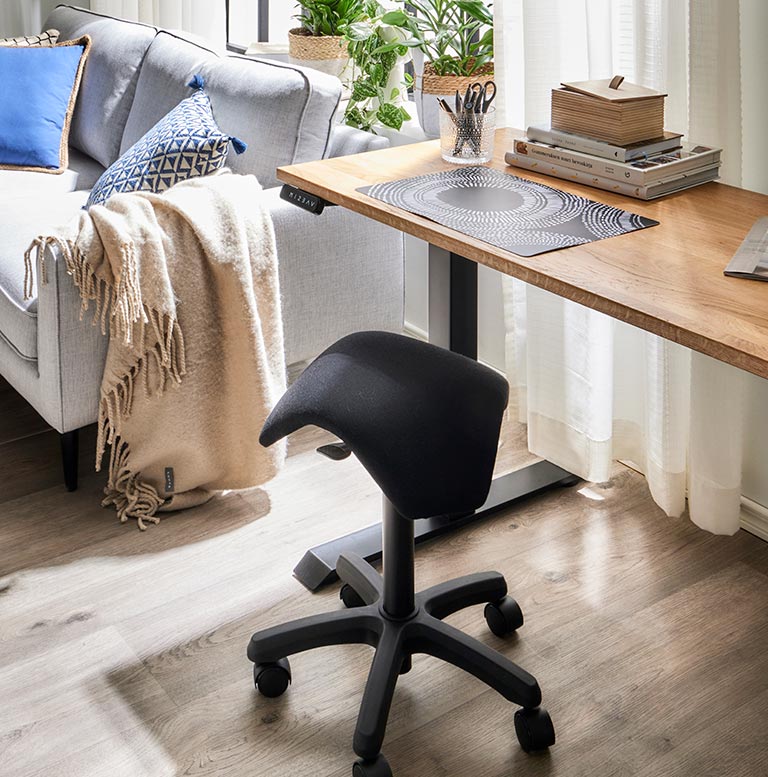 Inspiroidu etätöistä viihtyisän työpisteen äärellä. Työpöytä voi olla säädettävä sähköpöytä, perinteinen kirjoituspöytä tai pelaamiseen soveltuva tietokonepöytä. Säädettävä työtuoli pitää asennon optimaalisena läpi työpäivän. Hyvä työergonomia vaikuttaa työn tehokkuuteen.
