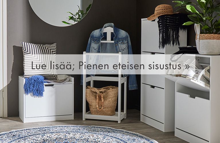 Eteisen sisustus ja sen käytännöllisyys vaikuttavat merkittävästi kodin ensivaikutelmaan. Panosta sekä toiminnallisuuteen että tyylikkyyteen, jotta eteinen toimii kutsuvana kodin käyntikorttina. Eteisen tai tuulikaapin sisustaminen tuottaa monesti asukkaille päänvaivaa; eteistilat saattavat olla pieniä, kapeita ja pimeitä. Lapsiperheissä ulkovaatteita riittää jokaiselle säälle, mutta säilytystiloja taas ei. Miten siis ratkaista monien haasteiden eteinen ja tehdä siitä samalla toimiva, että tyylikäs kodin käyntikortti?
