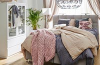 Hyvää unta edistävät mukavat vuodevaatteet ja rauhallinen värimaailma. Laadukas tyyny ja vuodenaikaan sopiva peitto auttavat sinua nukkumaan levollisemmin. Vaaleat värit saavat pienen makuuhuoneen tuntumaan tilavammalta. Yöpöytä on käytännöllinen kaluste sängyn vieressä. Säilytysratkaisut auttavat pitämään makuuhuoneesi järjestyksessä. Tunnelma säilyy rauhallisena, kun turhat tavarat ovat poissa silmistä. Työpiste makuuhuoneessa kannattaa siistiä työpäivän päätteeksi. Suosi makuuhuoneen valaisimissa epäsuoria valonlähteitä – ne tekevät huoneeseen rauhallisen tunnelman. Iso pörröinen matto parantaa makuuhuoneen akustiikkaa. Hotellitunnelman viimeistelet näyttävillä verhoilla. Valoverhot antavat näkösuojaa. Pimennysverhot kruunaavat makuuhuoneesi sisustuksen ja auttavat sinua nukkumaan levollisesti myös valoisina kesäöinä.