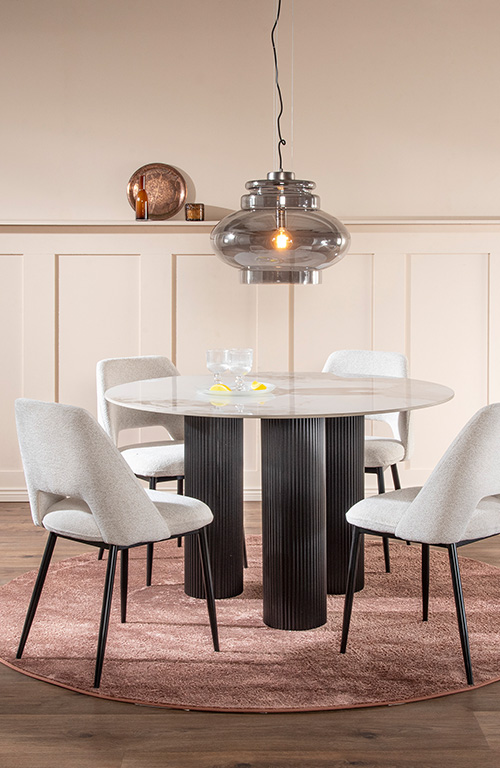 Usein ruokailutila on osana olohuonetta, tai keittiön ja olohuoneen välimaastossa. Ruokapöytä on hyvä valita sohvan tapaan käyttötarkoituksen mukaan. Jos nautit vieraiden kestitsemisestä, mutta muuten kotonasi asustaa vain muutama ihminen, kannattaa valita jatkettava pöytä, joka ei turhaan vie tilaa ”arkiasennossa”. Pääsääntöisesti pyöreä pöytä sujahtaa paremmin pieneen tilaan ja kulmikas istuu helpommin nurkkaan. Voit joko valita valmiin ruokailuryhmän, johon kuuluvat ruokapöydän tuolit tai leikitellä valitsemalla erilainen tuoli jokaiselle perheenjäsenelle.