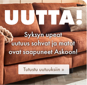 Askosta löydät jokaiseen tilaan ja tyyliin sopivat sohvat. Askon oman tehtaan sohvavalikoima on laaja ja taatusti suomalaista käsityötä. Kahden istuttavat sohvat ja kolmen istuttavat sohvat sopivat hyvin erilaisiin tiloihin. Moduulisohvat ovat monikäyttöisiä ja muunneltavia, joista luot käden käänteessä haluamasi kokoisen ja mallisen kulmasohvan. Divaanisohva luo olohuoneeseen luonnollisen löhöilypaikan, johon on helppo käpertyä nauttimaan olemisesta. Vuodesohva tai sohvasänky on hyvä hankinta vieraiden varalle. Tutustu mallistoon ja löydä unelmiesi sohva Askosta!