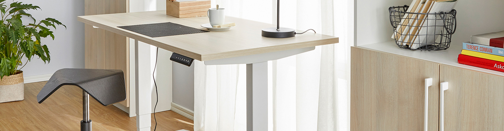 Kun kodista tulee työskentelytila, on tärkeää muistaa omaan työskentelyyn sopivat ja ergonomiset työvälineet. Kun valitset säädettävän työpöydän, voit työskennellä istuen ja välillä seisten. Ylös nostetun sähköpöydän alla voi kätevästi säilyttää pientä laatikostoa ja työtuolia silloin, kun et työskentele.