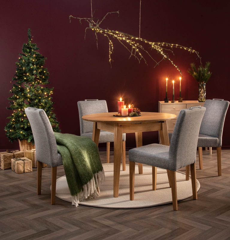 Jouluvalmistelut kannattaa aloittaa hyvissä ajoin. Varmista, että joulupöydän ääreen mahtuvat perheenjäsenet, ystävät ja yllätysvieraat. Onko sinulla riittävä määrä ruokapöydän tuoleja? Tee joulun kaunein kattaus isolle ruokapöydälle. Pöytätabletit, servetit sekä pöytäliina tekevät kattauksesta juhlavan. Kasaa pöydälle runsaasti kynttilöitä ja joulukukkia. Joulupöydän koristeeksi sopivat myös eukalyptuksen ja kuusen oksat, sekä ikivihreät köynnökset. Mukavat ruokapöydän tuolit tekevät joulun ruokailuhetkestä elämyksen. Jouluna aikaa vietetään ruokapöydän ääressä joulupuurosta illan pikkutunneille asti.