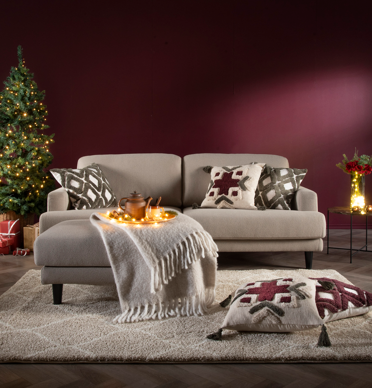 Sohvannurkkaan on mukava hakeutua rentoutumaan jouluruokailun jälkeen. Isolle kulmasohvalle mahtuu ystävät ja lähimmäiset katsomaan joulun toiveohjelmia. Tee kynttilämeri sohvapöydälle ja nauti tunnelmasta. Anna joulutähden loistaa ikkunallasi. Joulukukat kuuluvat perinteisesti joulutunnelmaan. Kukkapöydälle sopivatkin erinomaisesti hyasintti ja joulutähti.