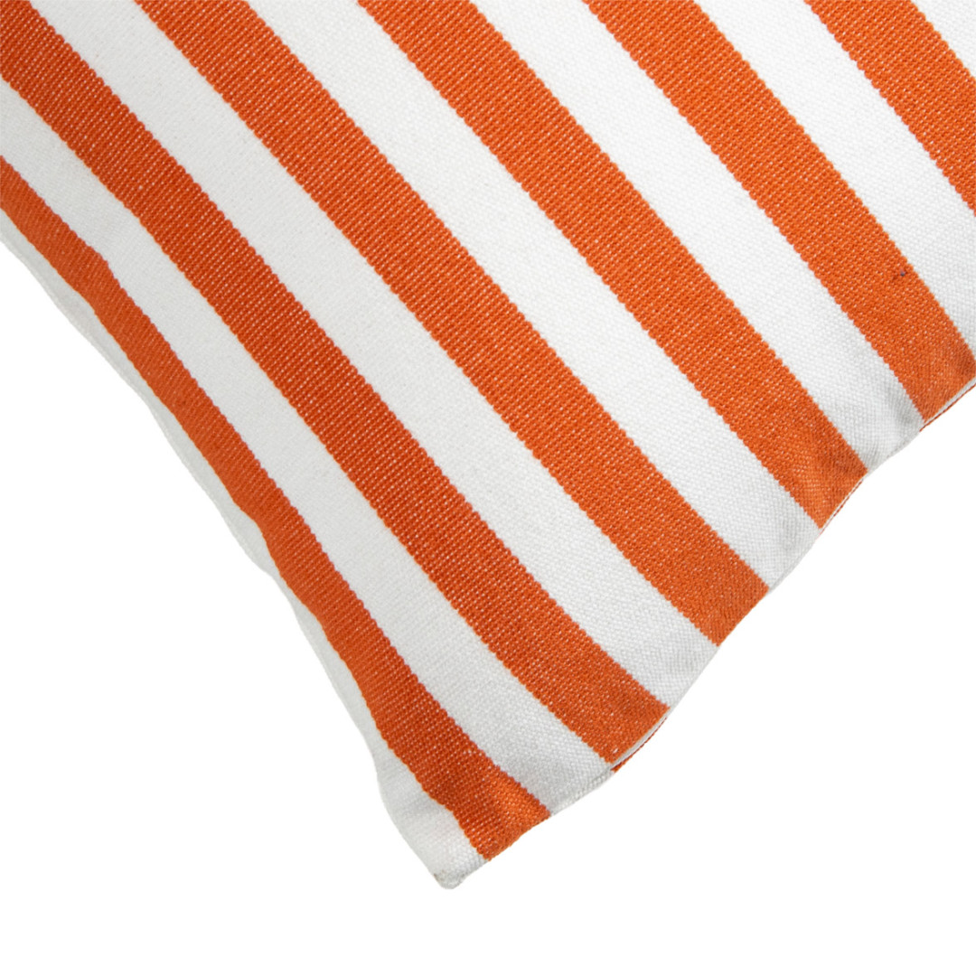 Bela-tyynyssä on raikas oranssi-valkoinen raitakuosi. Ajaton kuosi on helppo yhdistää monenlaiseen sisustukseen.
