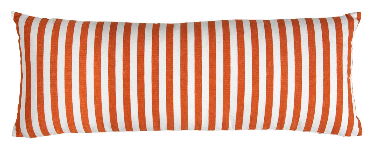 Pitkulainen raidallinen tyyny tuo mukavuutta ja raikasta ilmettä niin sisällä kuin suojaisissa ulkotiloissakin. Päällinen on miellyttävää ja hengittävää puuvillaa, joka tuntuu hyvältä ihoa vasten ja sopii hyvin päivittäiseen käyttöön.