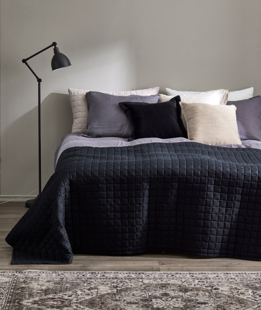 HETKI-päiväpeitto on yksivärinen ja siinä on ajaton ruututikkaus. Päiväpeittoon on helppo yhdistellä värikkäitä tyynyjä. Päiväpeite on molemmilta puolilta samanlainen, joten sitä voi käyttää molemmin puolin.