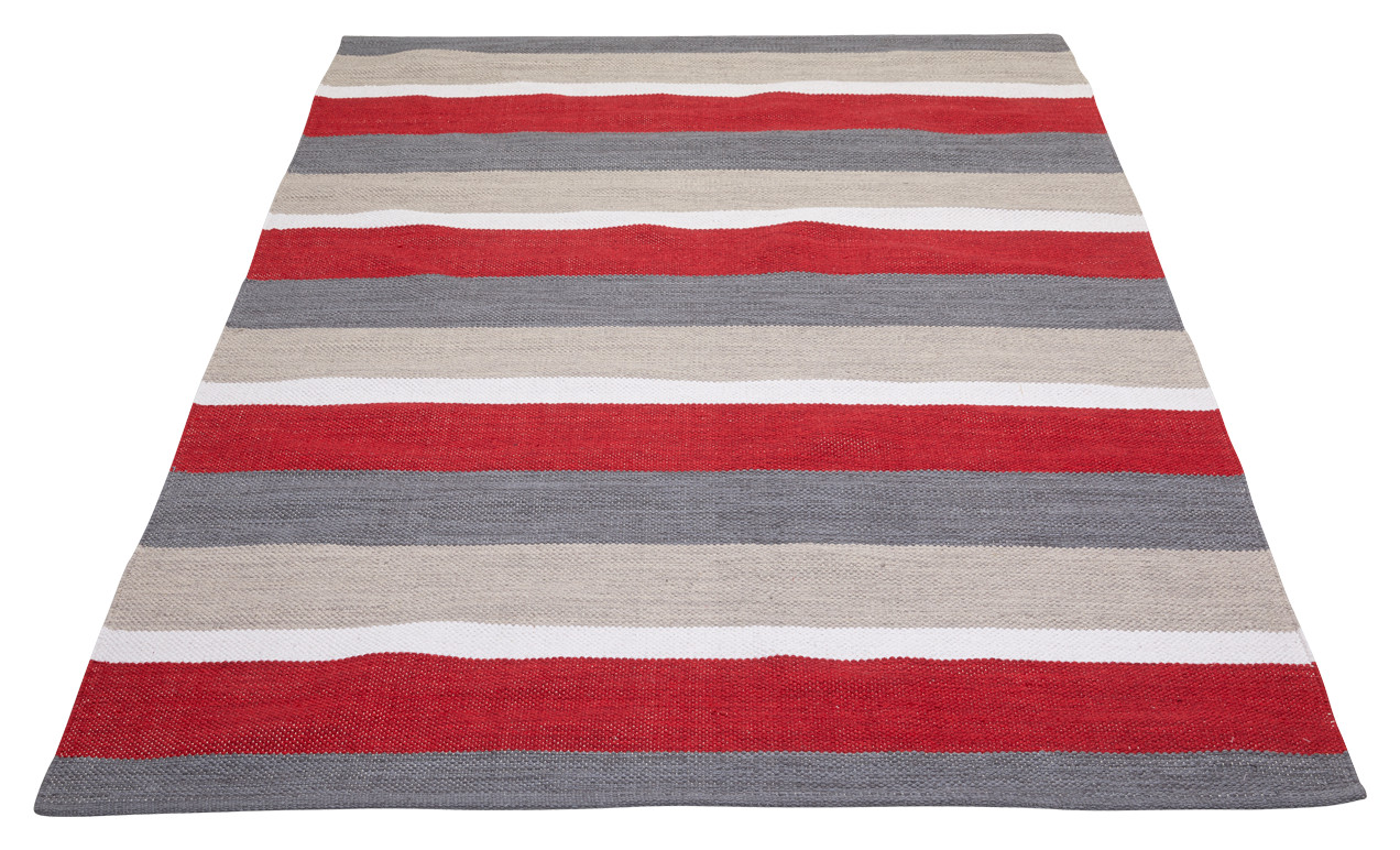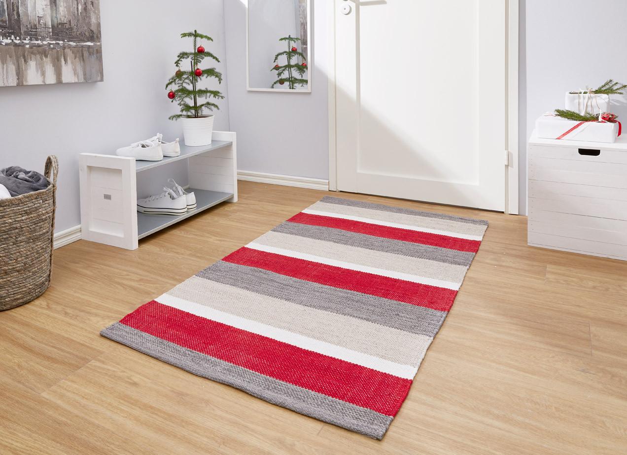 Puna-harmaa raidallinen Puro-puuvillamatto on ajaton valinta! Se on laadukas ja moderni puuvillamatto, jossa on moderni väriskaala: punaista, valkoista ja harmaata. Täydellinen keittiön matto tai käytävämatto ja raikkaudessaan nappivalinta vaikkapa mökille. Käännetyt päät viimeistelee tyylikkään maton.