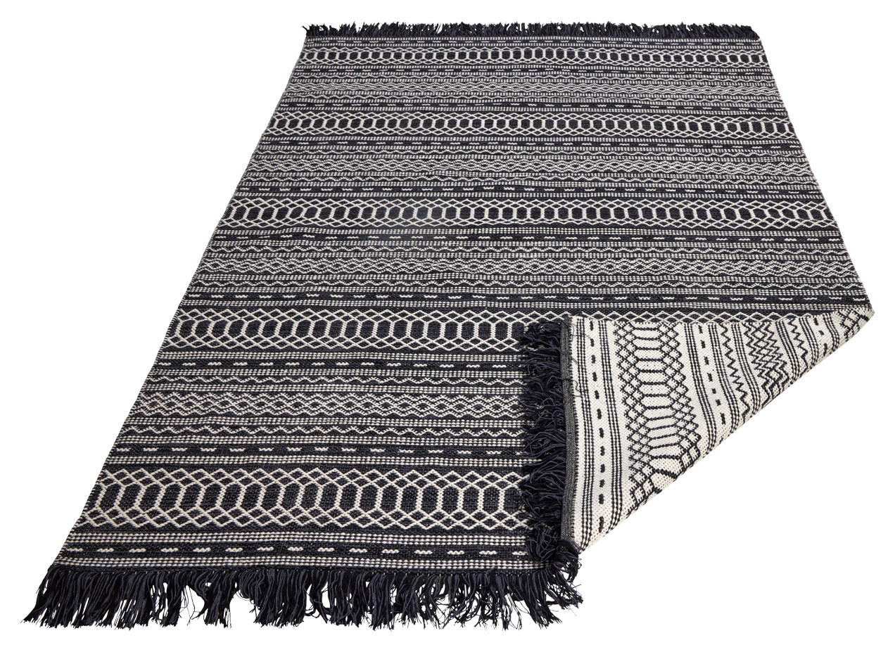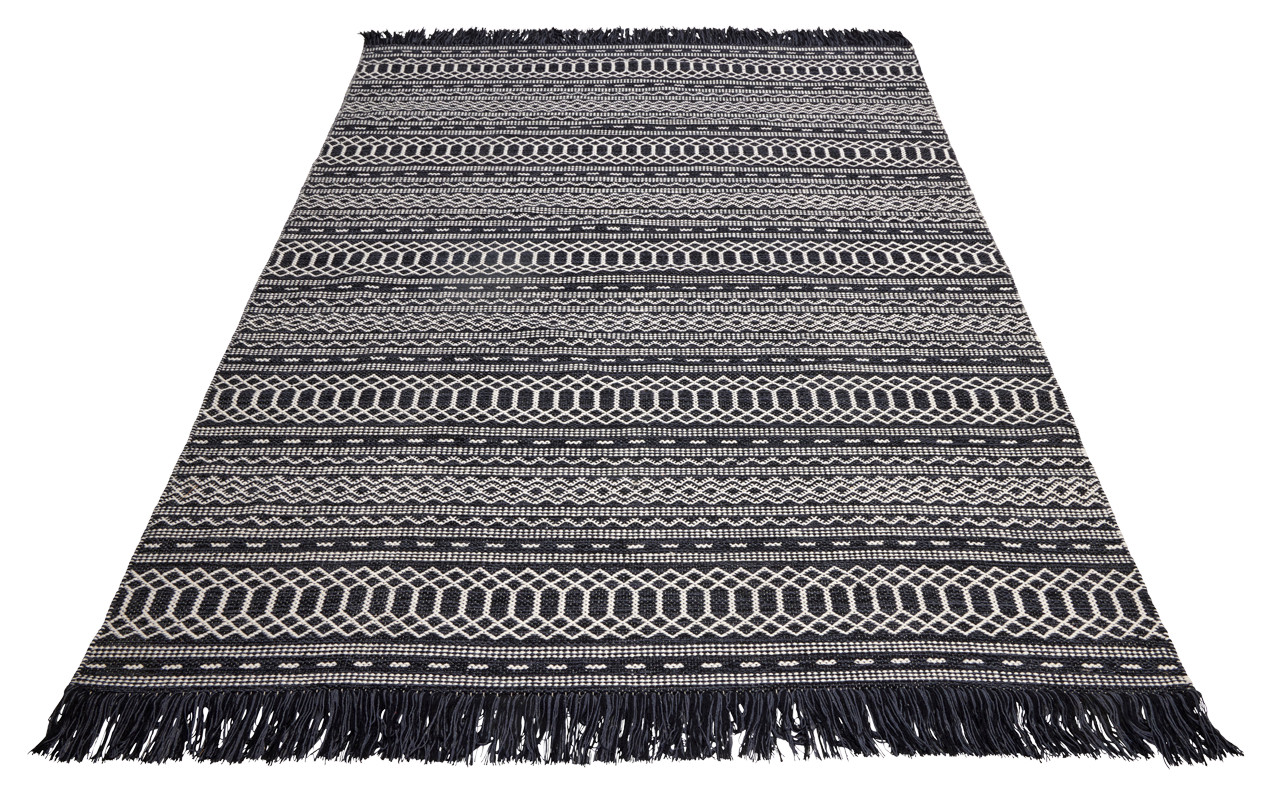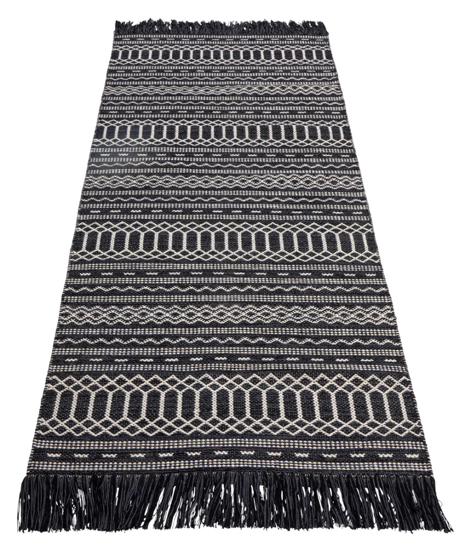 Musta-valkoinen Silja-puuvillamatto on ajaton valinta! Se on laadukas ja moderni puuvillamatto ja kauniit hapsut päissä viimeistelee maton ulkonäön. Täydellinen matto kauniilla kuvioinnilla on nappivalinta vaikkapa mökille.