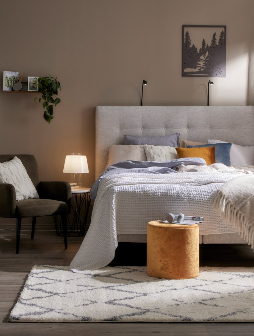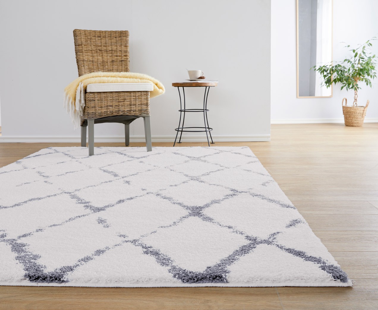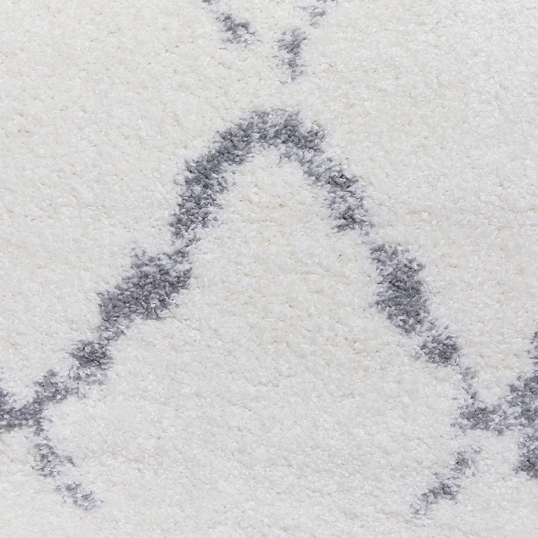 Pehmeä valkoharmaa nukkamatto on varma valinta. Maton salmiakkikuvio on trendikäs. Atlas-nukkamatto tuo tilaan ylellisyyden tuntua. Sen pehmeä nukka tuntuu miellyttävältä jalalle esimerkiksi olohuoneessa. Materiaali on 100 % polypropeenia, joten matto on helppo pitää puhtaana.