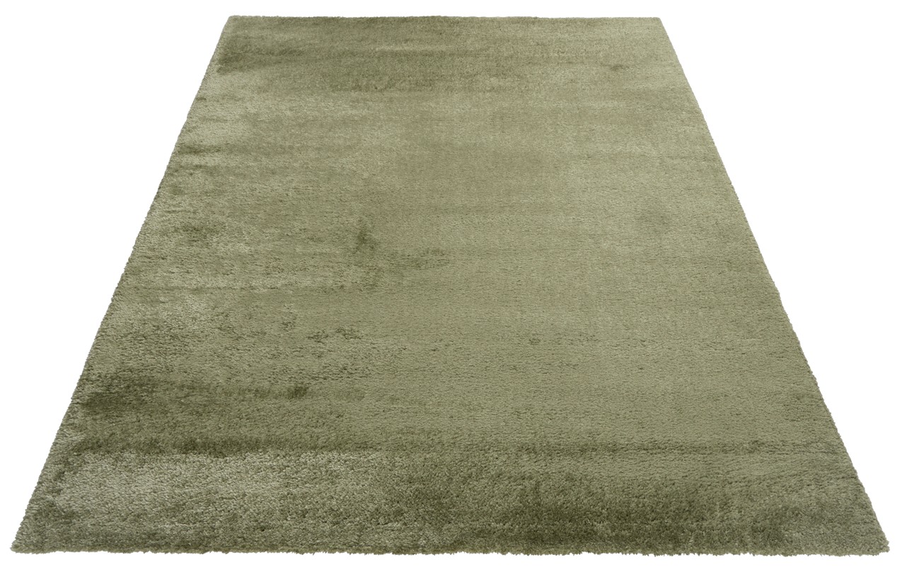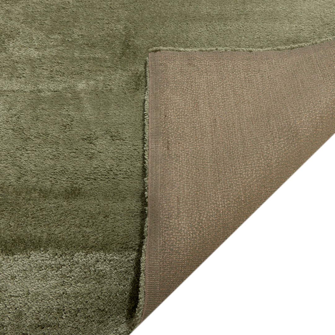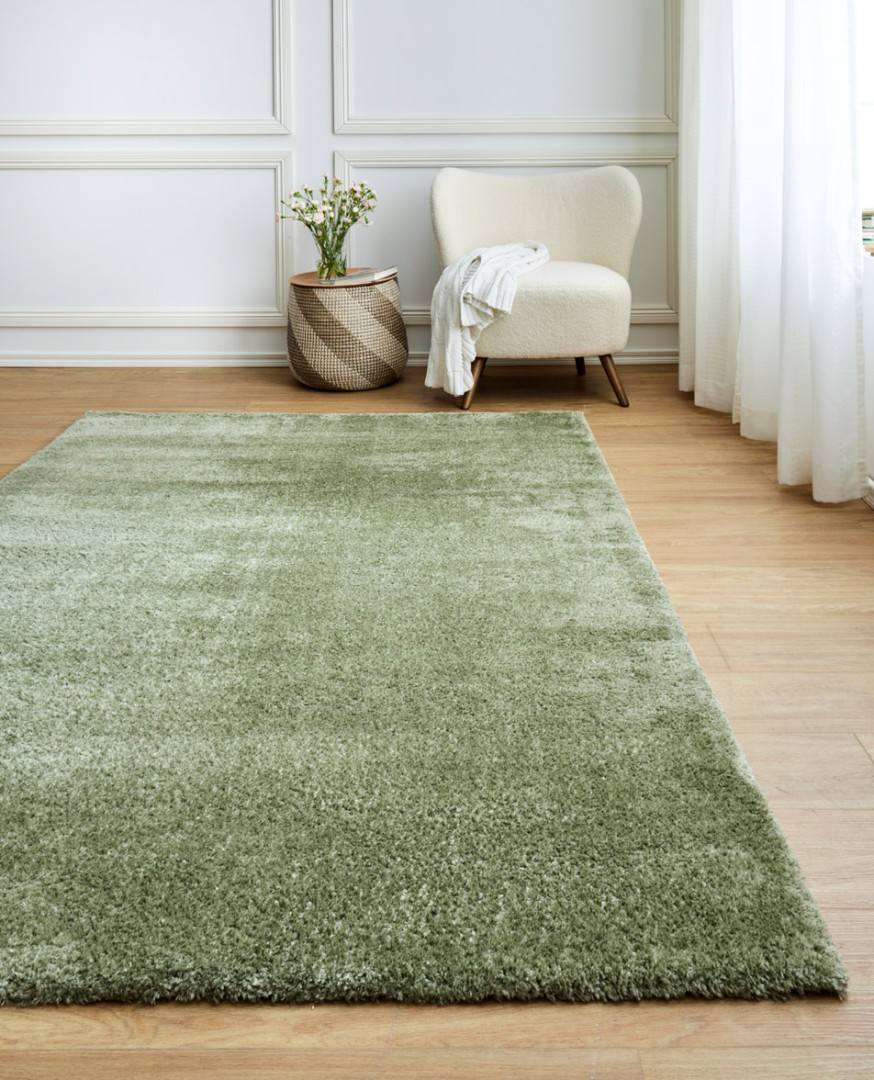 Vihreä Hilton-nukkamatto on valmistettu kierrätetystä polyesteristä. Maton paksu nukka tuntuu miellyttävältä jalan alla.
