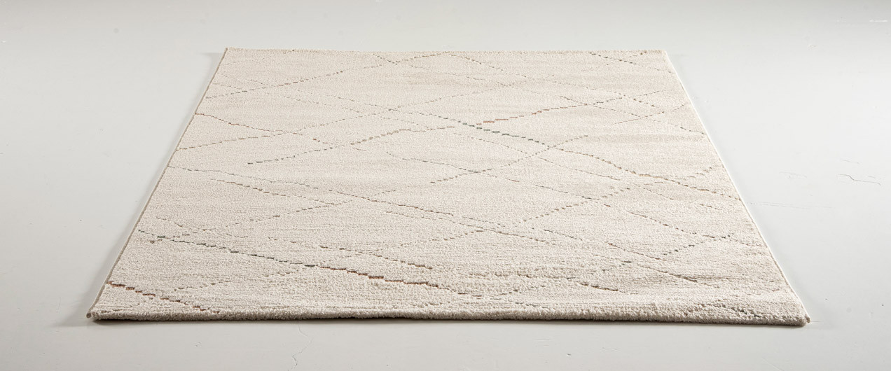 Vaalea mattasävy yhdistettynä eritasoiseen vaaleita värejä sisältävään kuvioon tuo hillityn modernia elävyyttä olohuoneeseen tai muuhun kodin tilaan. Matalanukkaisena se on helppohoitoinen ja sähköistymätön.