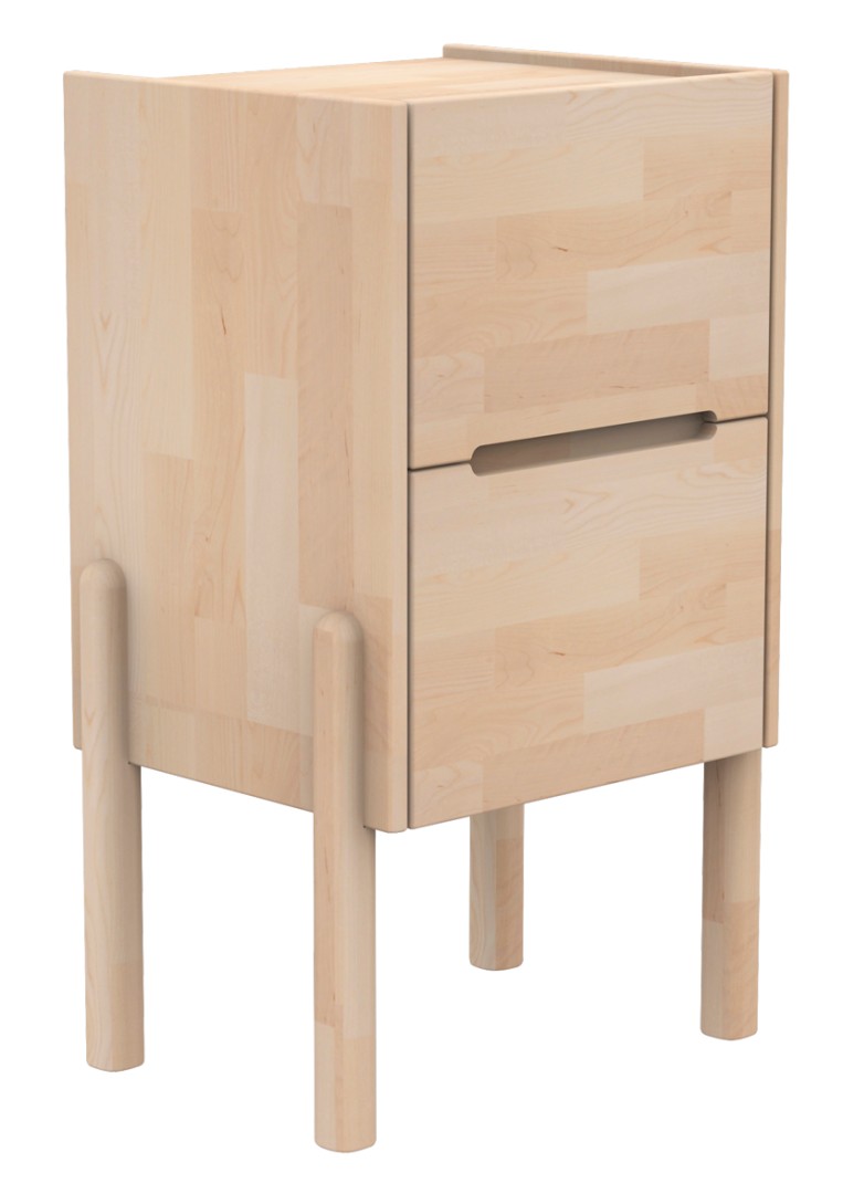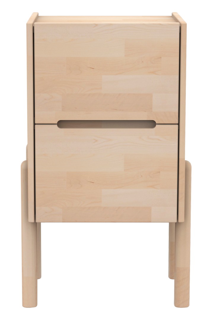 Lennu-yöpöytä on personallinen ja funktionaalinen, ei mikään tusinatuote muotoilultaan. Koivunvärinen yöpöytä on varustettu kahdella kätevällä vetolaatikolla ja upotettu kansiosa antaa viimeistellyn vaikutelman.