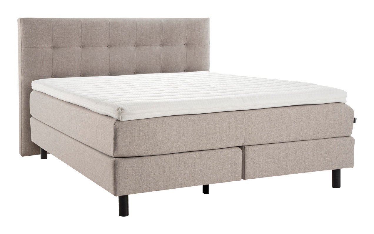 Tähän pakettiin kuuluu myös näyttävä napeilla ja tikkauksella viimeistelty Ergoflow-sängynpääty.