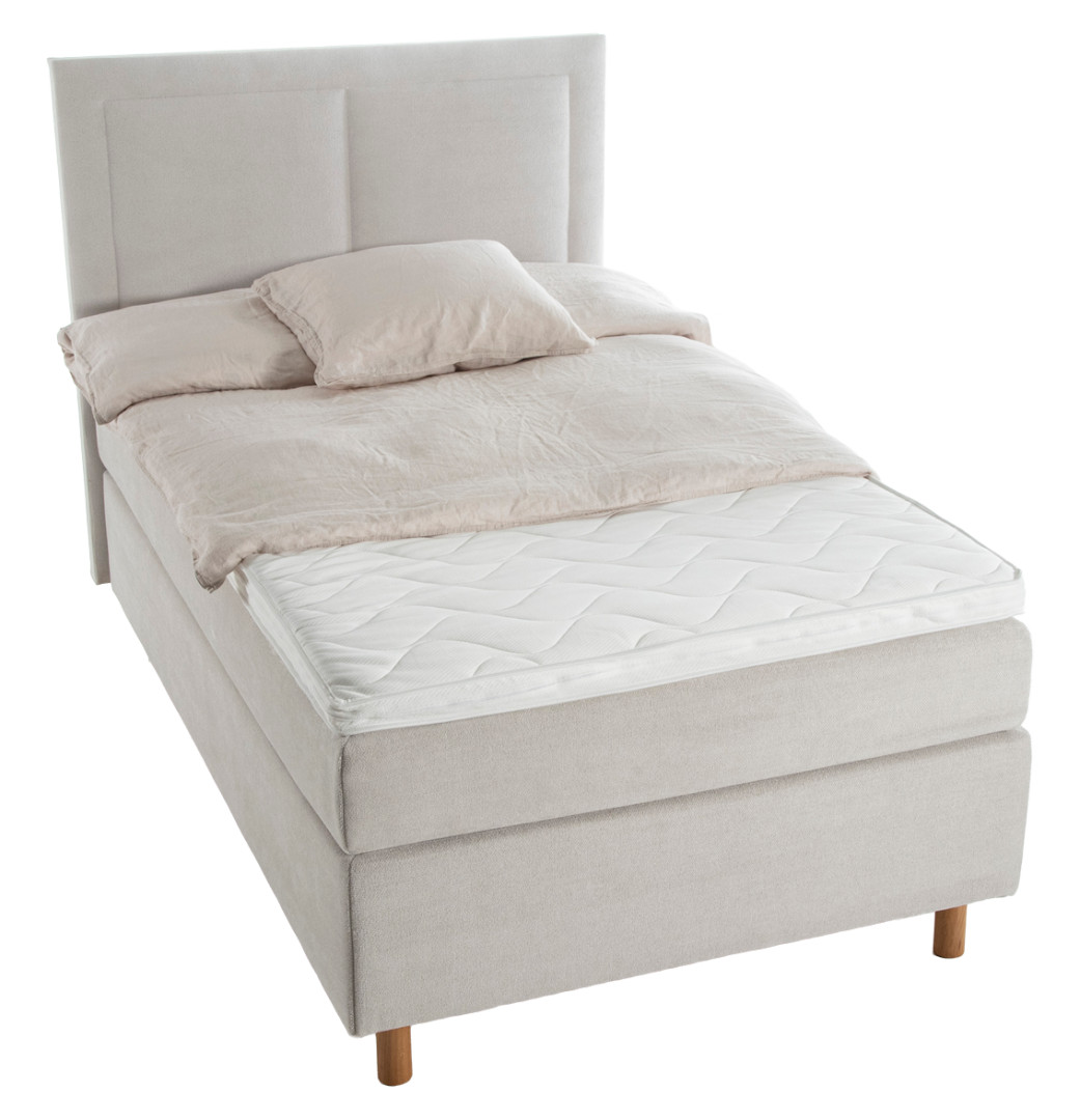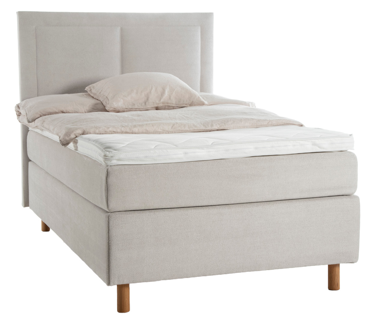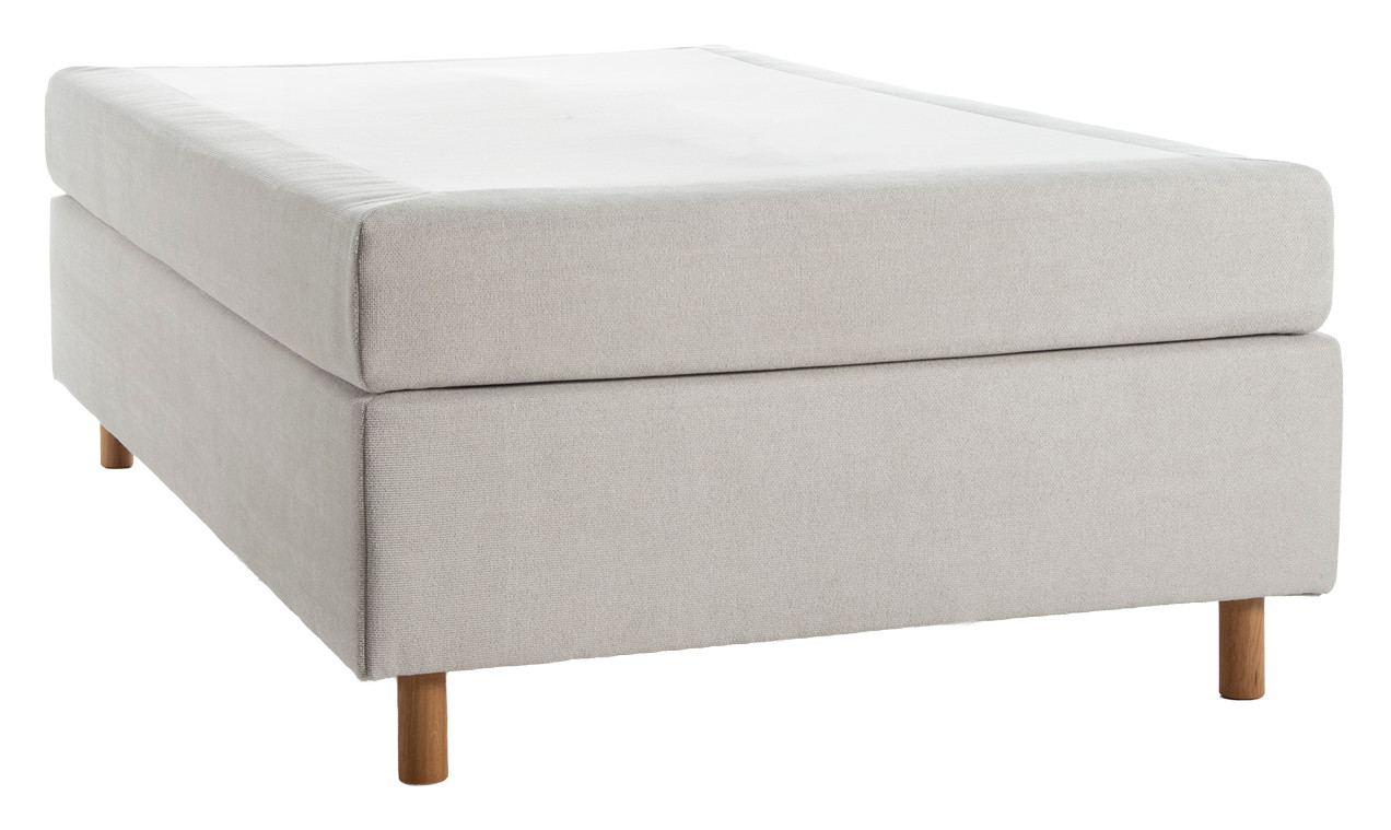 USVA-patjan pintakankaana toimii laadukas joustokangas, joka lisää nukkumismukavuutta myötäilevyydellään. Tämä tarkoittaa sitä, että patja mukautuu kehosi muotoihin entistä paremmin, jolloin tunnet olosi kevyeksi ja täysin rentoutuneeksi yön aikana. USVA-jenkkisänky on verhoiltu tyylikkäällä beigen värisellä huonekalukankaalla, joka tuo makuuhuoneeseen luonnollista lämpöä ja ajatonta eleganssia. Beigen sävy on helppo yhdistää erilaisiin sisustustyyleihin, ja sen neutraali värimaailma pysyy aina ajankohtaisena. Sängyn viimeistelee tammen värinen kartio-mallinen puujalka, joka antaa sängylle kevyen ja ilmavan sekä esteettisesti kauniin ilmeen.