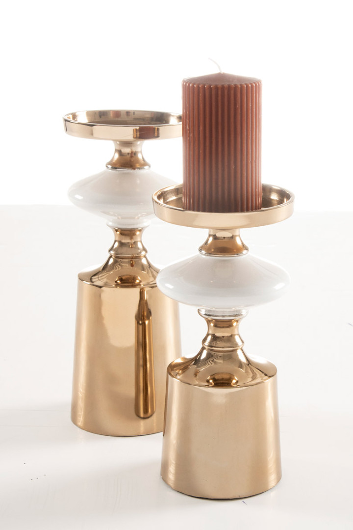 Kullanväriset Aurea-kynttilänjalat tuovat tilaan ylellisyyttä ja lämpöä.