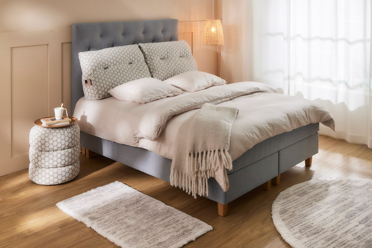 Cosy-päätytyyny on valmistettu Askon omalla tehtaalla laadukkaita materiaaleja käyttäen.