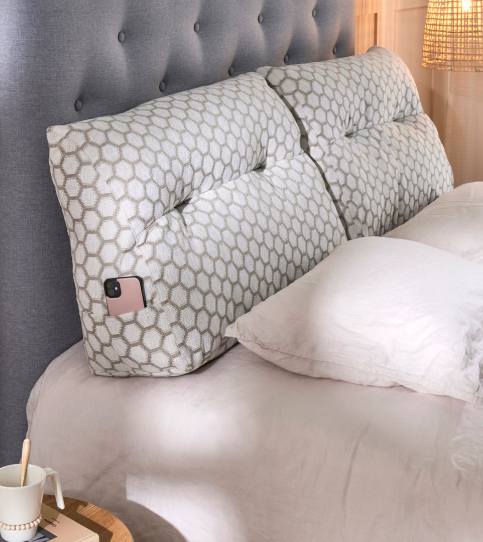 Monikäyttöinen sängynpäätytyyny! Päätytyynyllä kohotat helposti päätypäätä esimerkiksi lukemista tai television katselua varten. Päätytyynyyn on ommeltu taskut, joissa säilytät pienet tavarat kätevästi.
