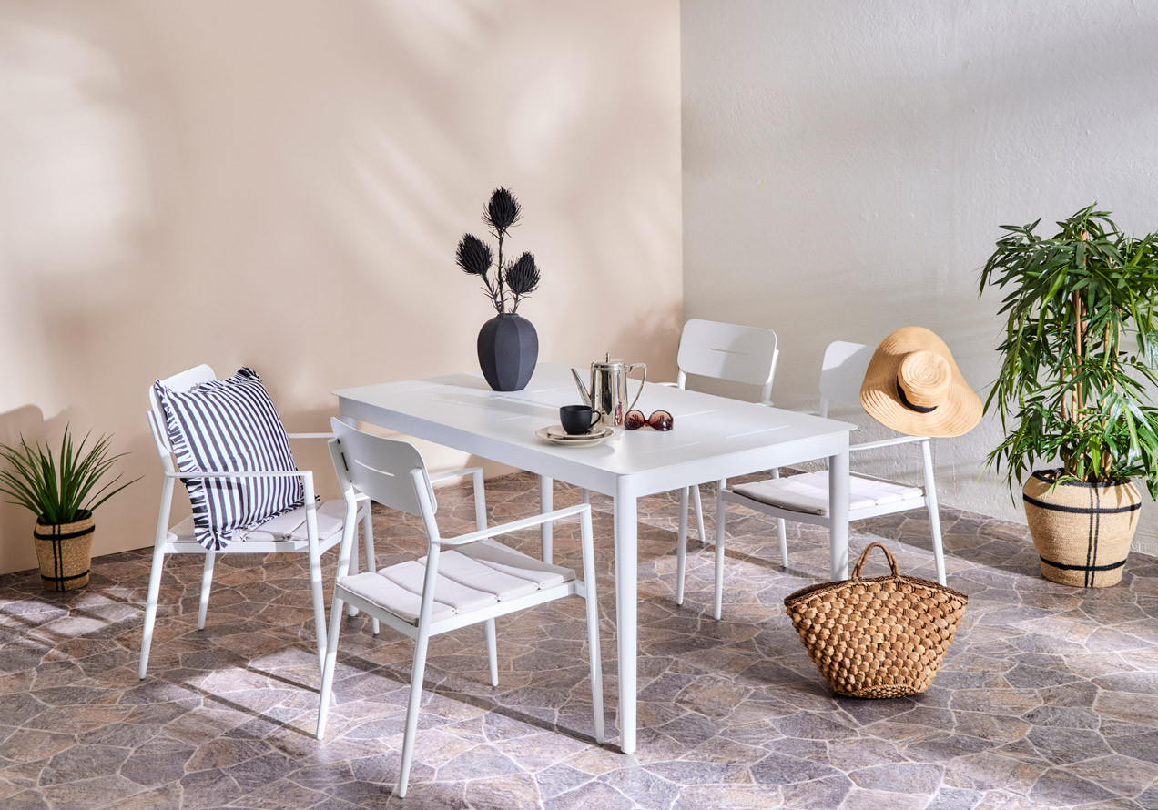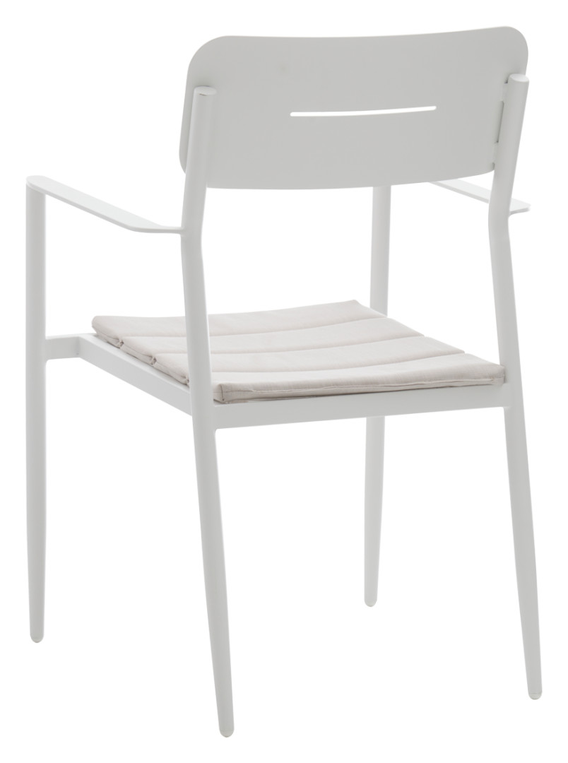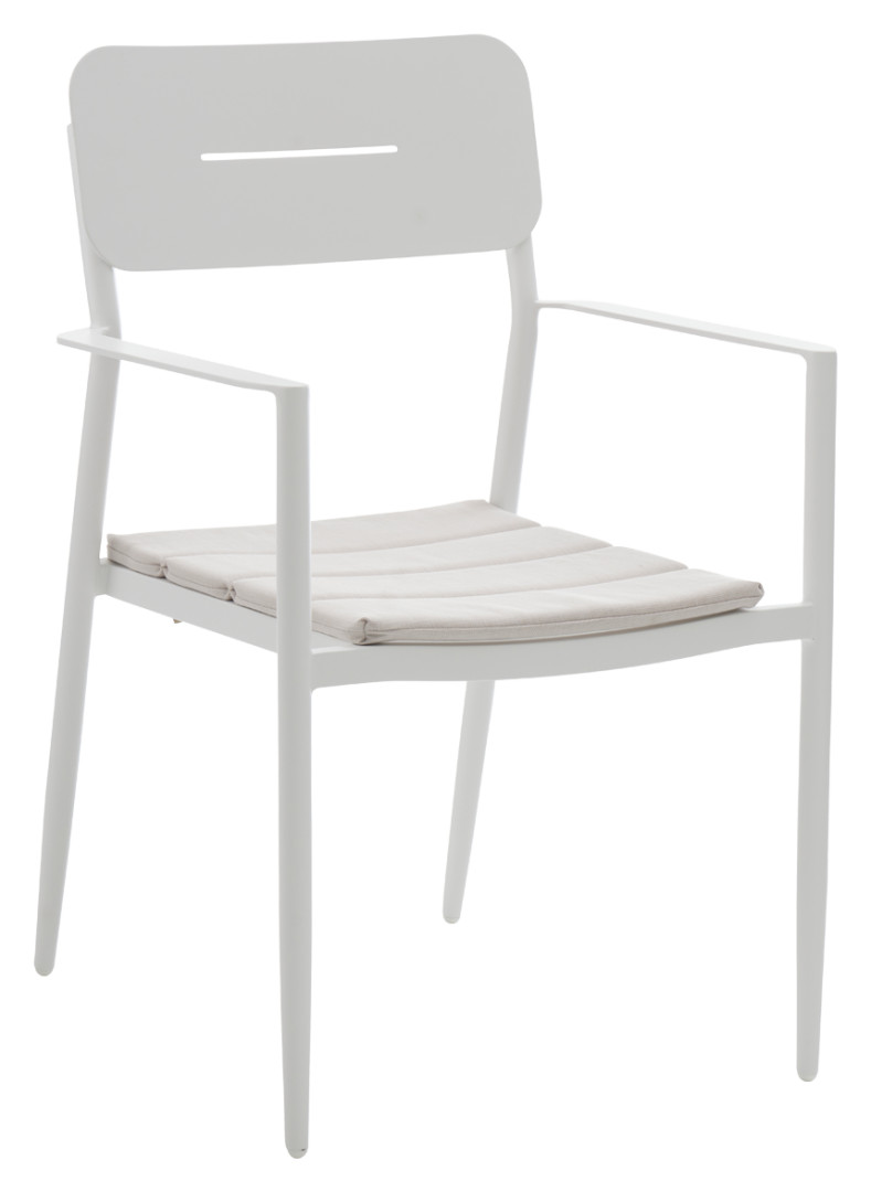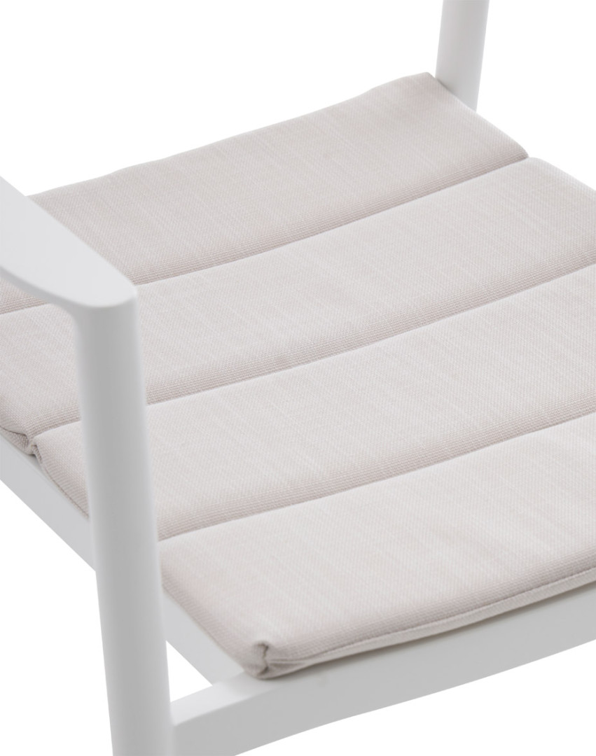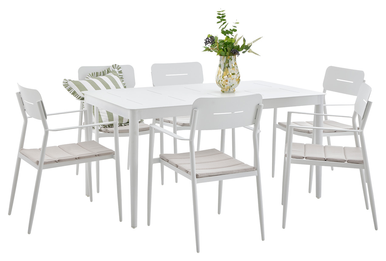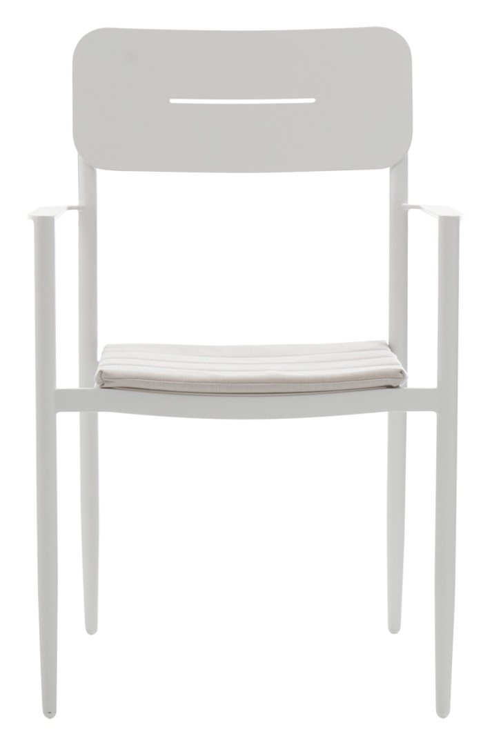 MADEIRA- puutarhatuoli tuo puutarhaasi, terassillesi tai parvekkeellesi raikasta väriä ja kestävää mukavuutta. Sen ajaton valkoinen alumiinirunko on jauhemaalattu säänkestäväksi, joten se säilyttää tyylikkään ulkonäkönsä ja tuo valoisuutta haluttuun tilaan. Hintaan sisältyy pehmeä kermanvärinen olefin-kangastyyny, joka lisää mukavuutta ja on suunniteltu kestämään ulkokäytön vaatimukset.