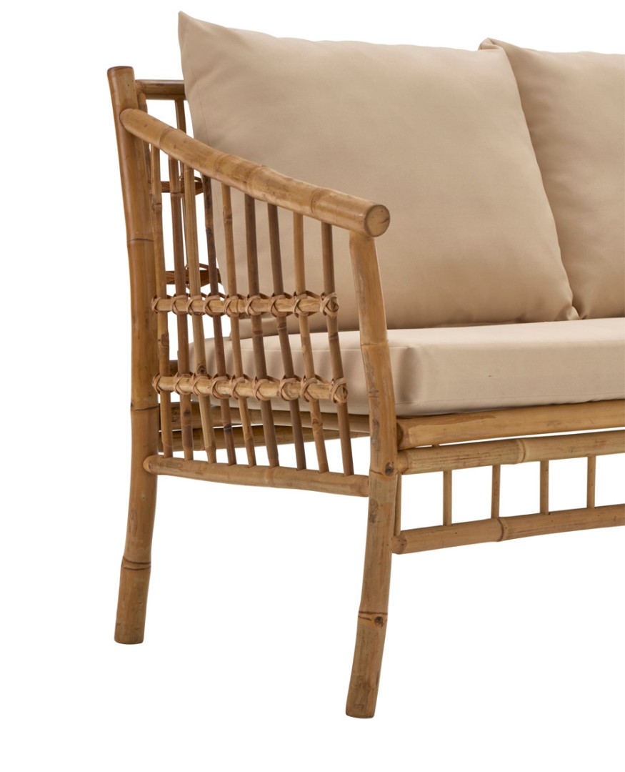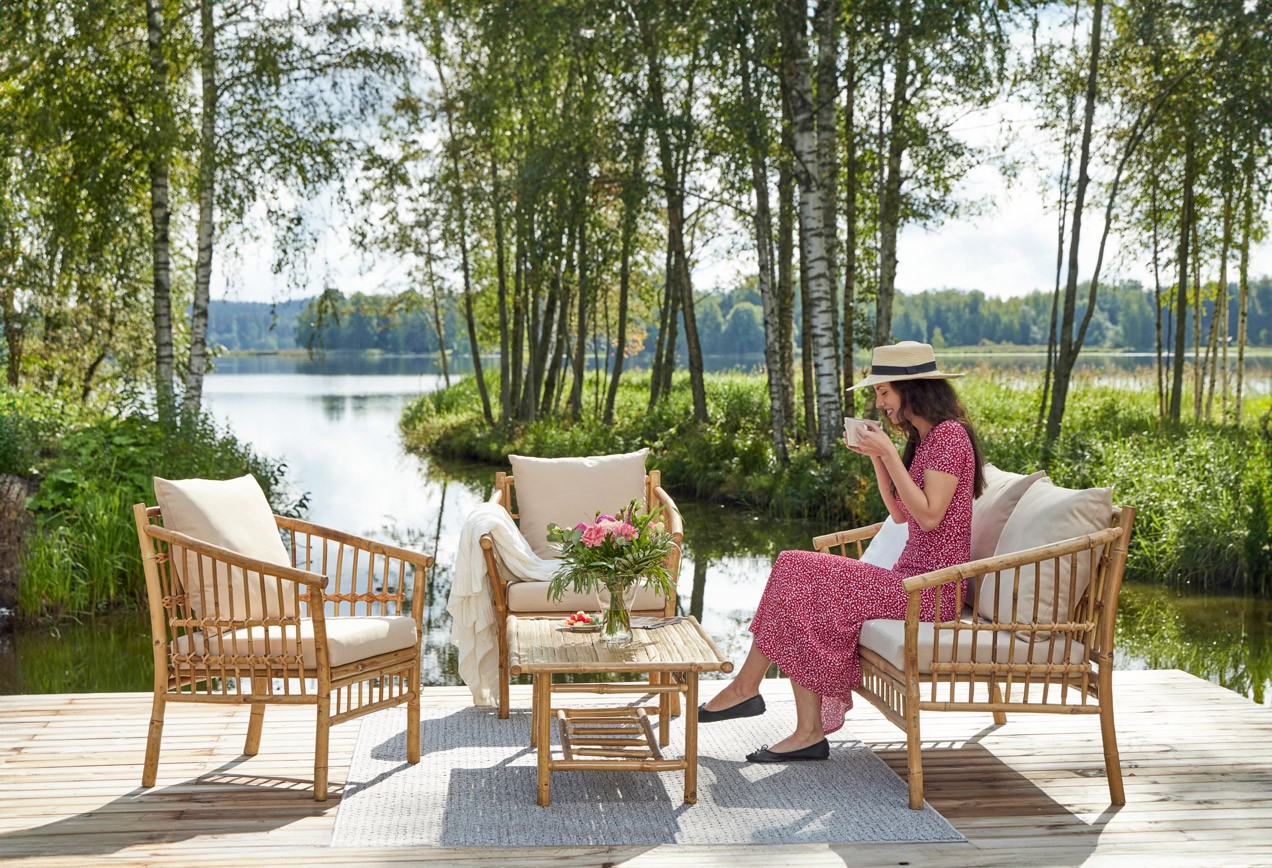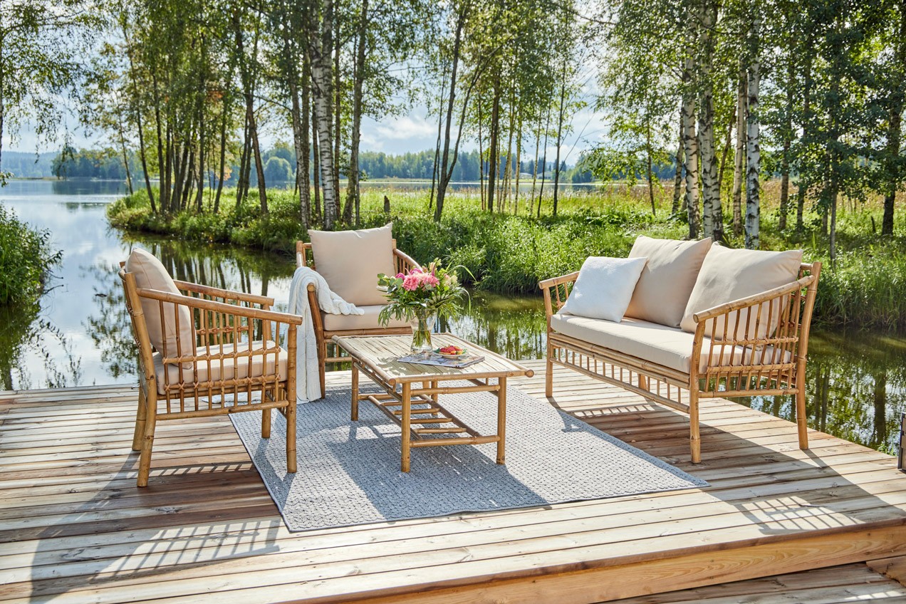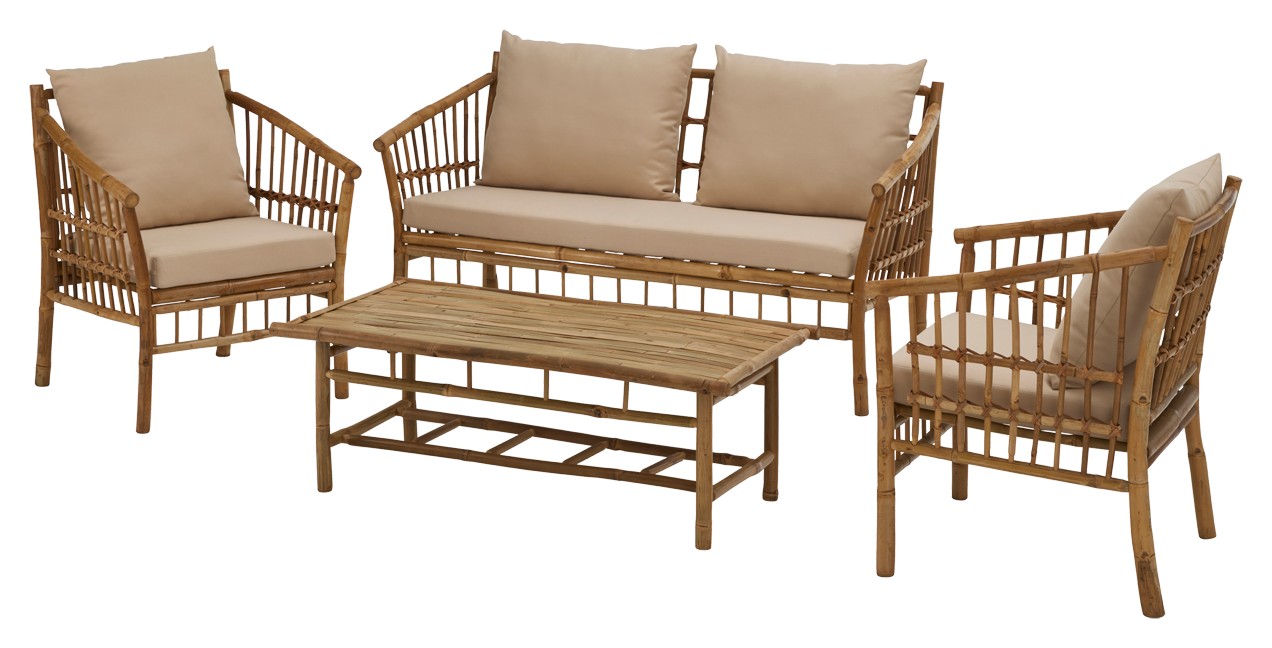 Herkullista mukavuutta ja ekologista tyylikkyyttä - bambusta valmistettu VIOLA-terassiryhmä on kuin luotu täydellisen kesäkeitaan keskipisteeksi. Sen avulla luot luonnonläheistä tunnelmaa parvekkeelle tai puutarhaan. Sohvaryhmään kuuluu iso sohva, kaksi nojatuolia sekä sohvapöytä. Tilaa riittää helposti 4-5 hengelle. Sohvapöytä täydentää kokonaisuuden tarjoten kätevän alustan juomille, kirjoille tai vaikkapa koristeille. Viimeistele sisustus koristetyynyillä, torkkupeitolla, kasveilla - ja nauti aamukahvistasi auringonnousua ihastellessasi!