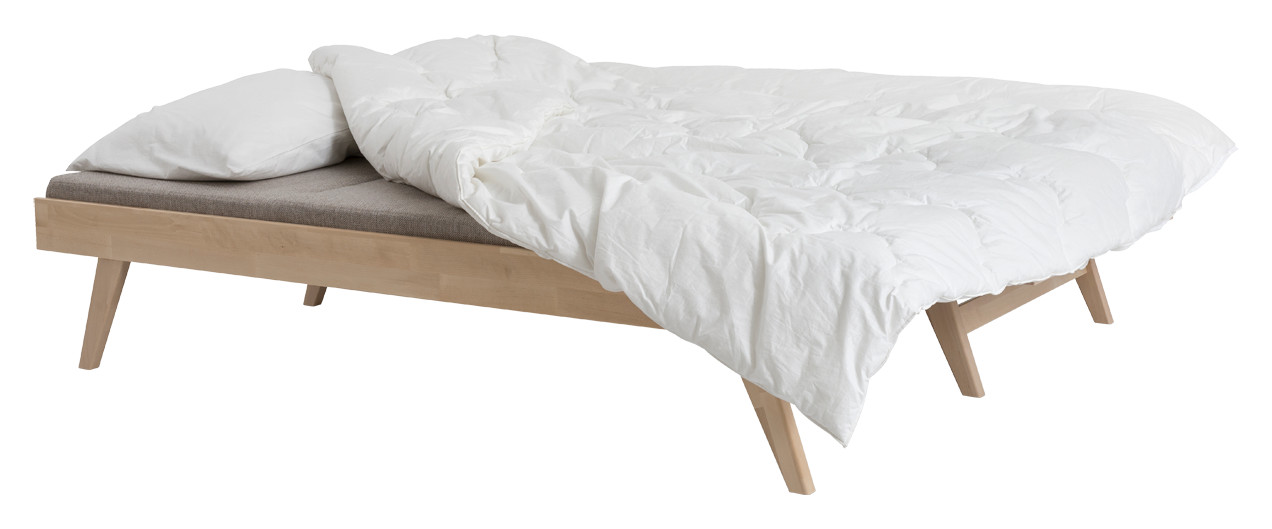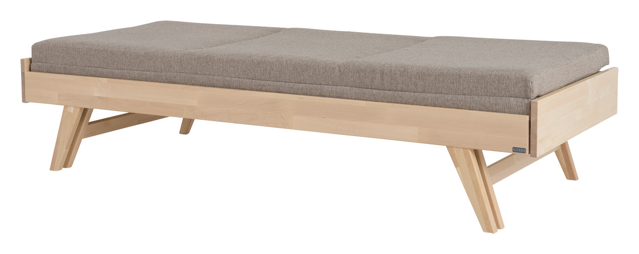 Vaivattoman levitysmekanismin ansiosta sohva avautuu nopeasti leveämmäksi vuoteeksi, jonka koko on valintasi mukaan 190 x 140 cm tai 200 x 140 cm. Massiivikoivusta valmistettu runko takaa kestävyyden ja pitkän käyttöiän, ja yhteensopivat Kiteen taittopatjat viimeistelevät istuin- ja nukkumismukavuuden.