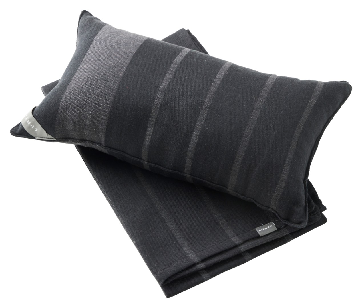 LUHTA HOME RANTA-saunatyyny takaa rentouttavan saunahetken. Tyylikäs musta, raidallinen kuosi sopii niin moderniin kuin perinteiseenkin saunaan tunnelman luojaksi. Saunatyyny on myös oiva mökkituliainen!