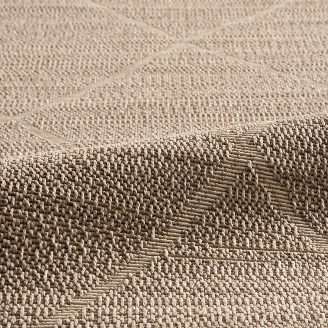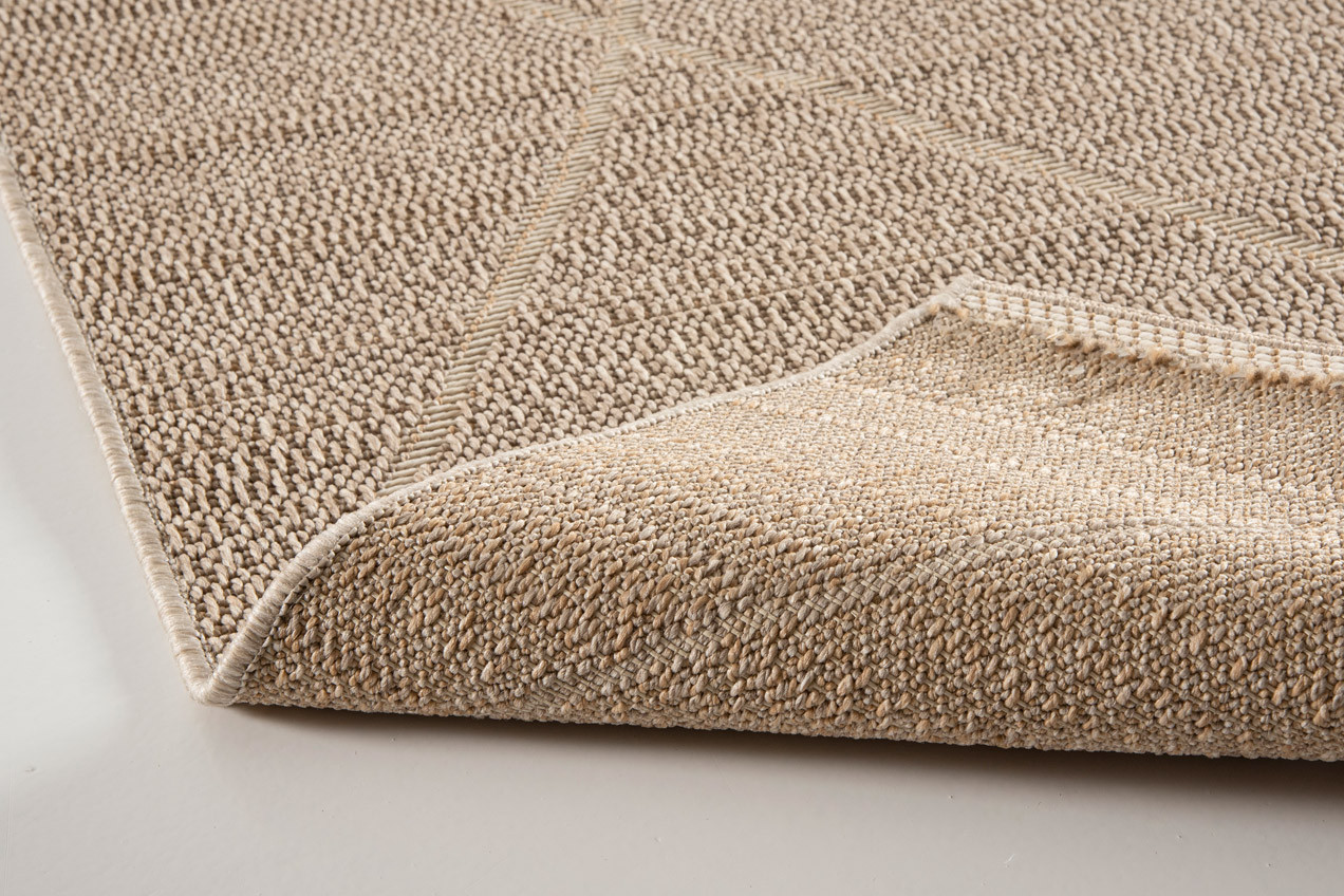 Vaaleanbeige Naxos-matto 160x230 on käytännöllinen ja helppohoitoinen valinta terassille, mutta myös näyttävä sisustusmatto. Sisä-ja ulkokäyttöön soveltuva .Se on ihanteellinen esimerkiksi ruokailutilaan tai keittiöön. Naxos-matossa on klassinen vinoruutukuvio.