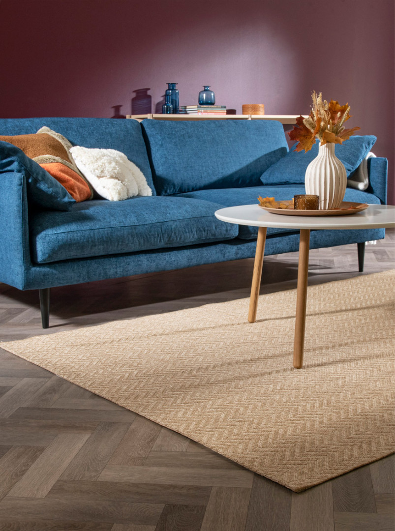 Herringbone-tyylinen pintakuvio antaa matolle modernin ja ajattoman ilmeen. Maton tiivis rakenne tekee siitä helppohoitoisen ja oivallisen valinnan niin eteiseen, keittiöön kuin ruokapöydän alle. Matto on kevyt käsitellä ja pysyy hyvin paikallaan – tarvittaessa maton alle voi lisätä liukuesteen.