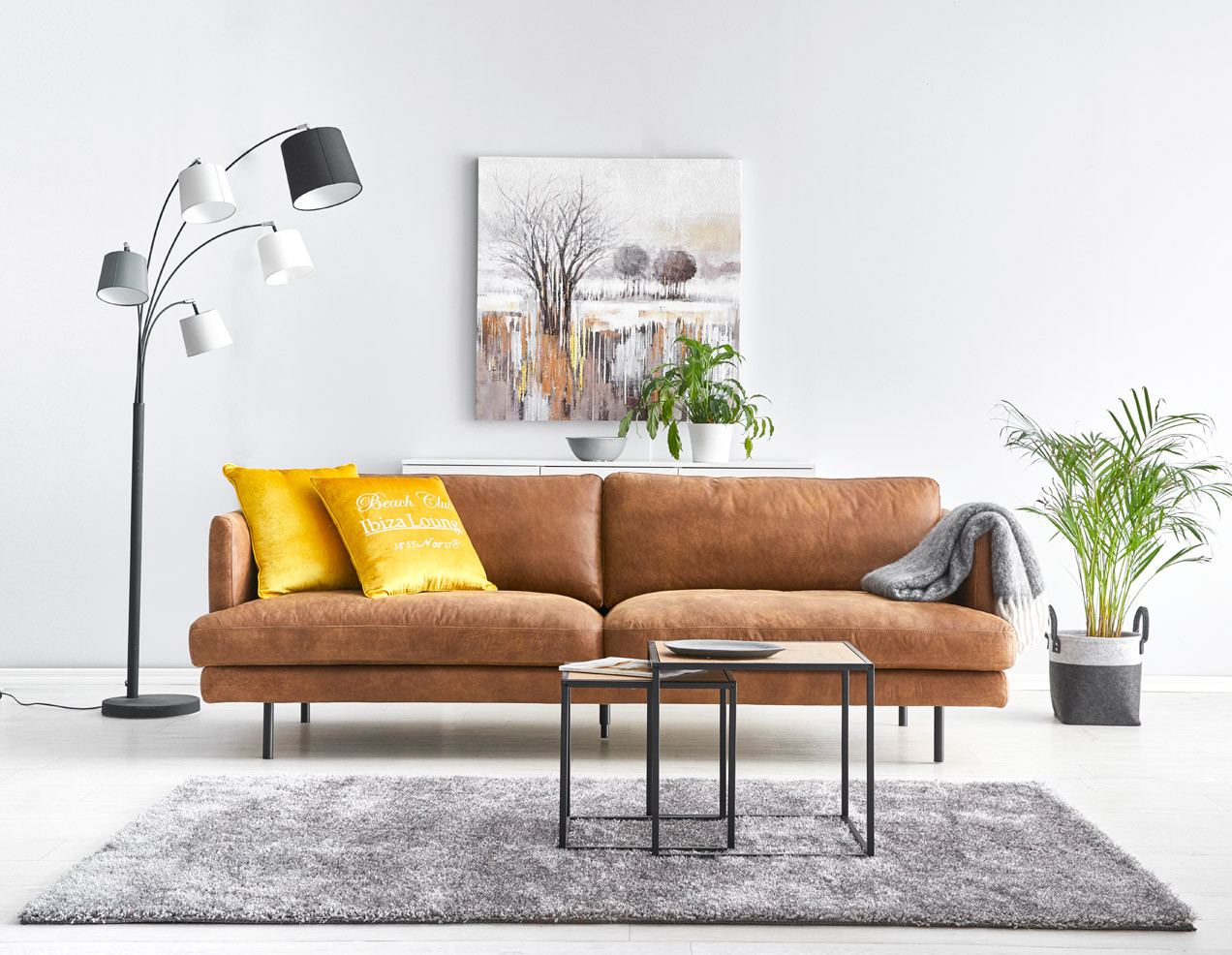 Neiser CLARA-sohva – konjakinväristä nahkaa ja modernia eleganssia, kolmelle istujalle
