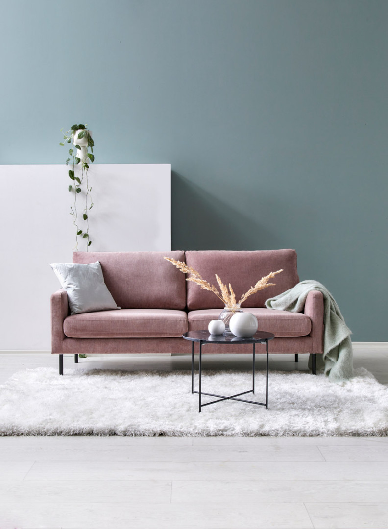 KATA 3h sohva Orinoco-kangas, Roosa, jalat musta metalli