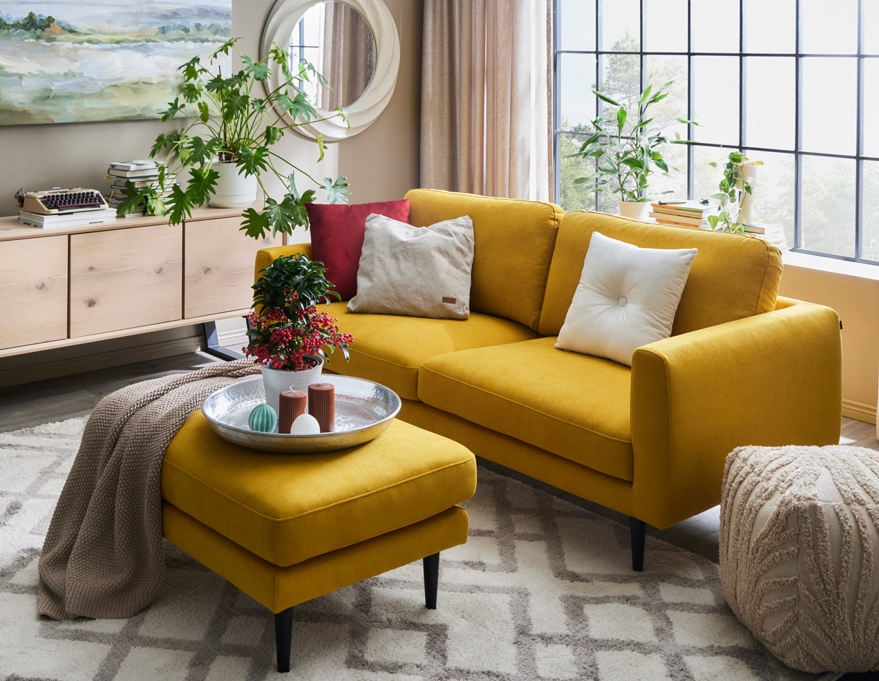 Frida-sohvaa jaksat ihailla päivä toisensa jälkeen! Sohvan upean värinen verhoilu luo erityistä tunnelmaa huoneeseen ja ominaisuuksiltaan sohva on mainio.