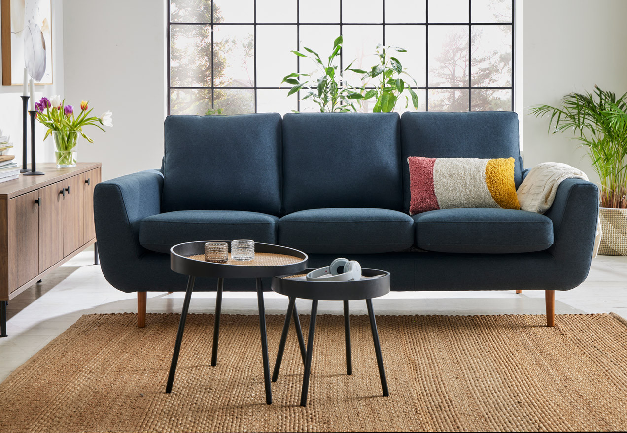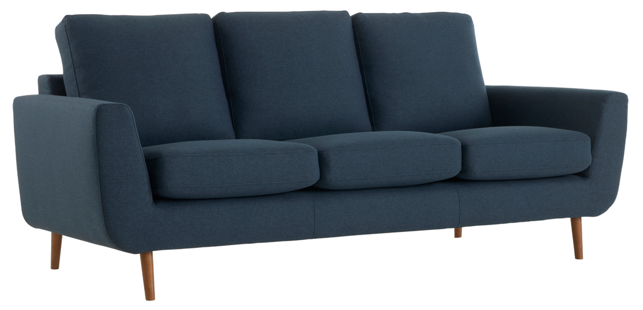 Nikita-sohva on täydellinen valinta, kun etsit klassista muotoilua ja käytännöllisyyttä, joka kestää arjen haasteet. Terra-kankaan sininen sävy luo sisustukseen raikkaan ja rauhoittavan tunnelman, joka tuo tilaan modernia ajattomuutta ja pähkinän sävyiset korkeat puujalat keventävät sohvan ilmettä tuoden siihen ajattoman eleganssin. Kolmenistuttava Nikita-sohva tarjoaa tilaa mukavaan yhdessäoloon ja rentoutumiseen, ollen samalla kaunis sisustuselementti.
