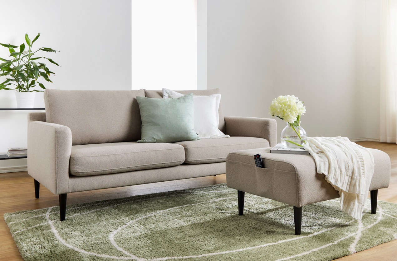 Rosa-sohva on täydellinen valinta, kun etsit tyylikkyyttä ja mukavuutta kompaktissa koossa. Tämä kolmen hengen sohva yhdistää ajattoman muotoilun ja kodikkaan verhoilukankaan, joka tuo tilaan modernia seesteisyyttä ja kiinnostavaa tekstuuria. Korkeat mustat puujalat lisäävät sohvan ilmavuutta ja helpottavat siivousta sen alta.
