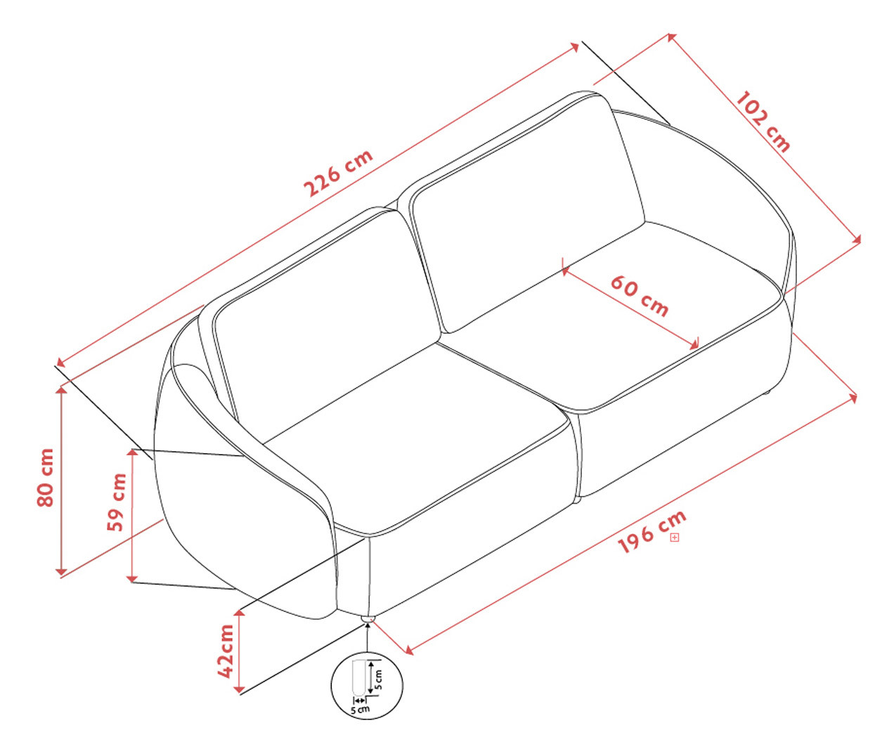 L 226 cm S 102 cm K 80 cm Istuinkorkeus 42 cm |