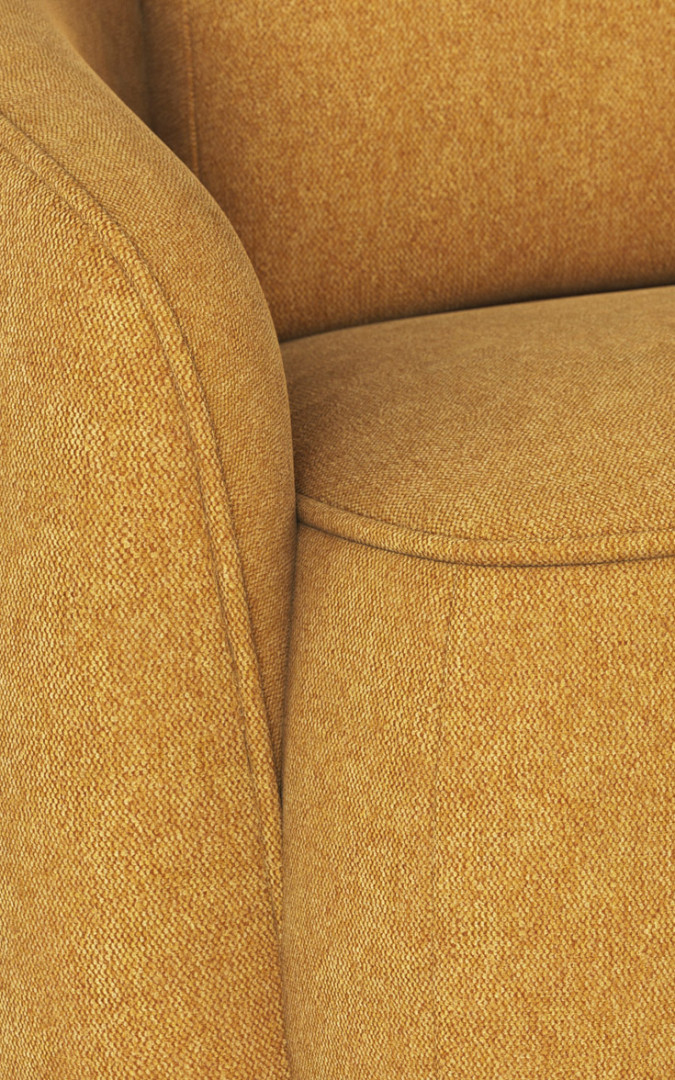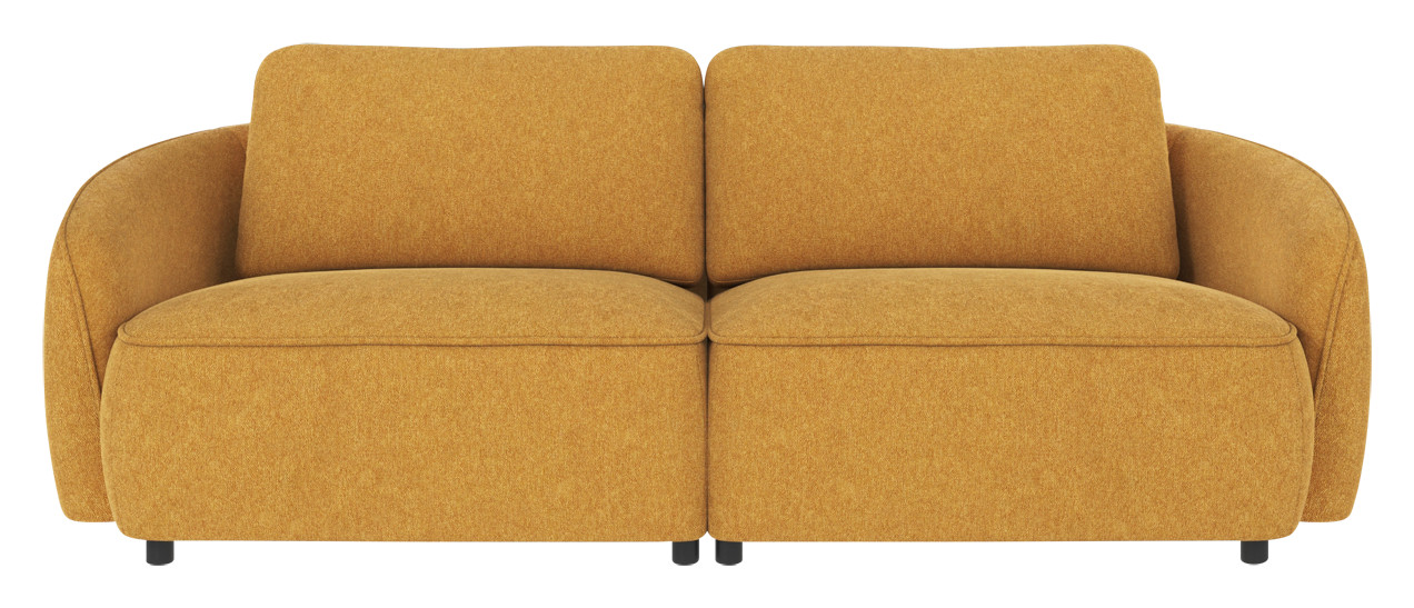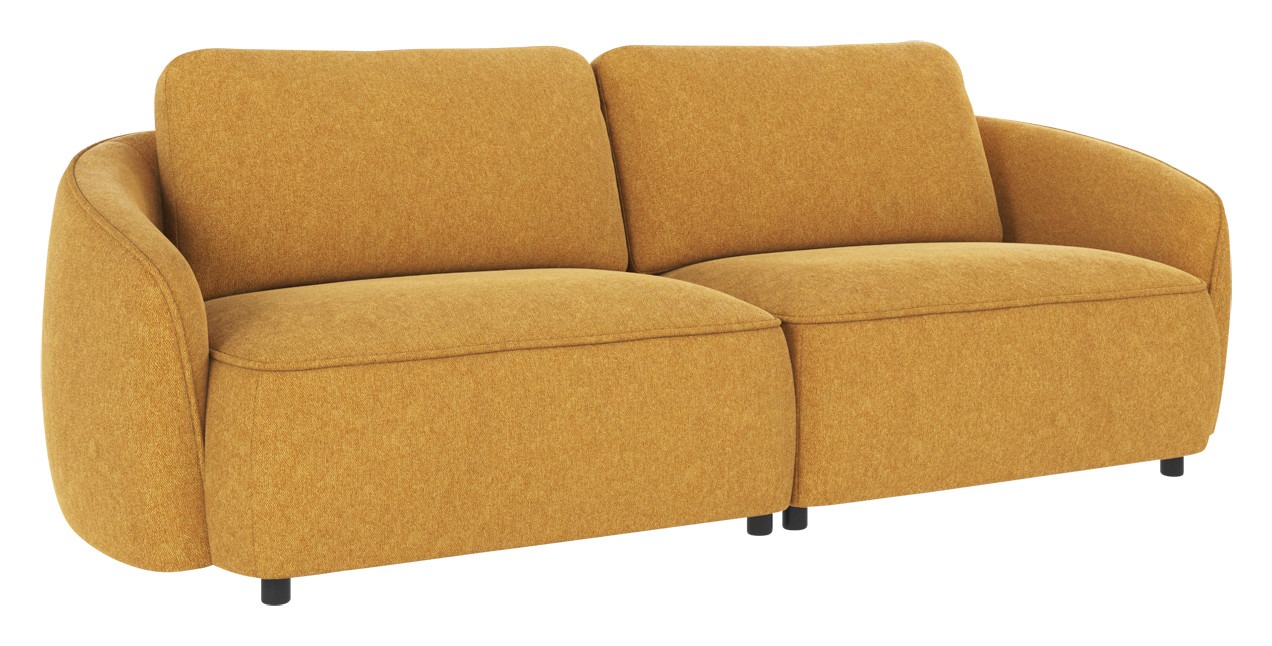Norris-sohva on tyylikäs ja moderni sohva, jonka pyöreät muodot luovat harmonisen tunnelman kotiisi. Sohvassa on irrotettavat selkätyynyt ja istuinrungossa nozag-jousitus. Kuvan Norris-sohva on verhoiltu kauniin keltaisella Brenda-kankaalla.