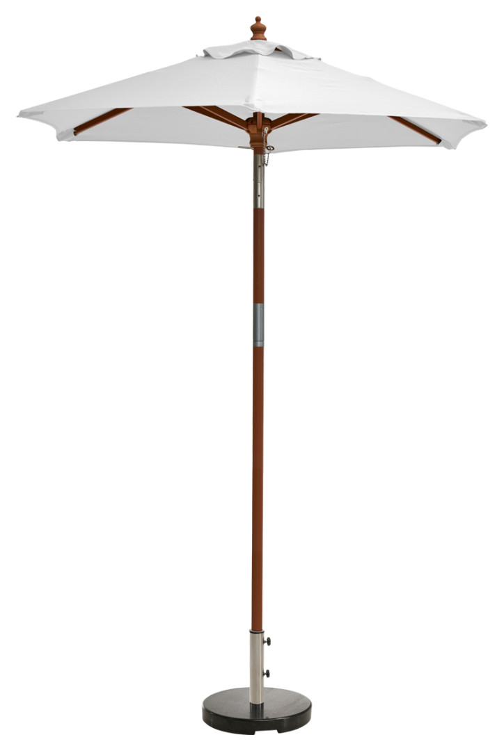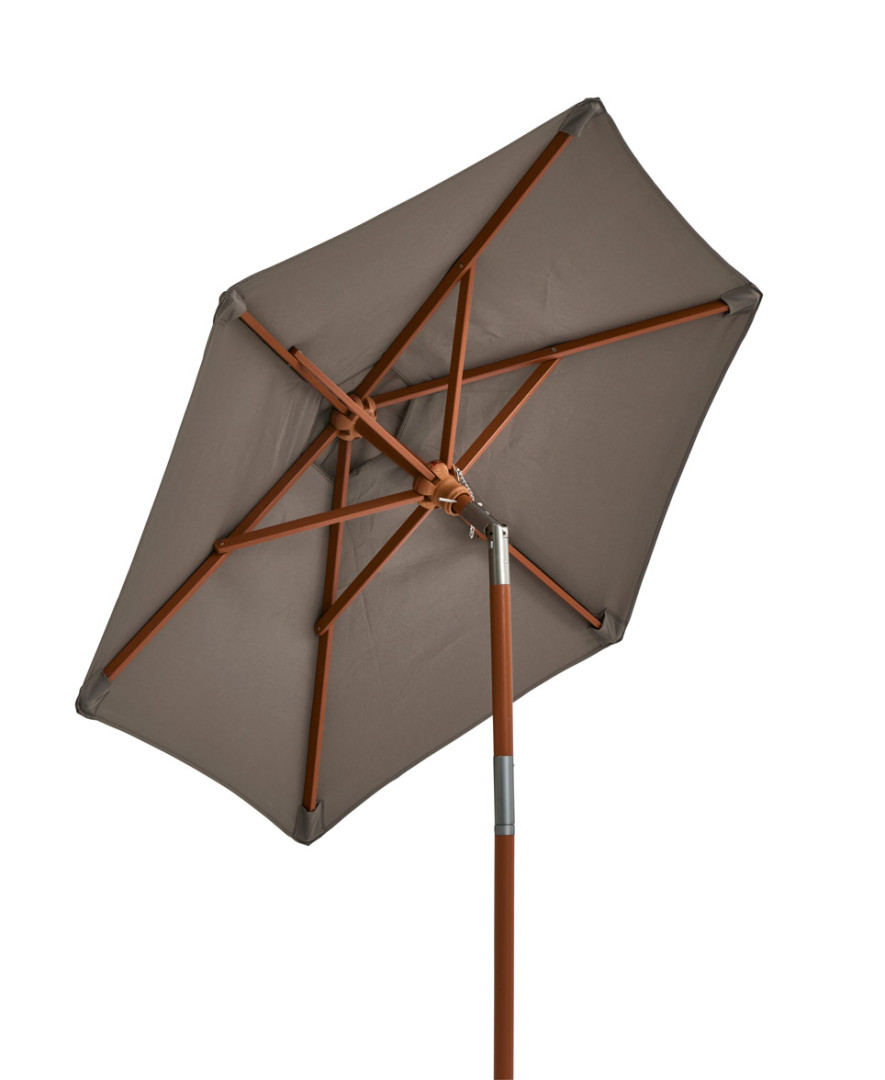 Puuvartisen SAHARA-aurinkovarjon halkaisija on 150 cm. Varjo sopii hyvin pienelle parvekkeelle tai terassille. Varjoa pystyy taittamaan sivulle taittomekanismin avulla. Varjon materiaali on kovapuuta. Varren molemmin puolin olevat väkipyörät avaavat varjon tasaisesti molemmin puolin. Tämä vähentää varjon mekanismiin kohdistuvaa rasitusta ja keventää varjon avaamista. Kankaassa on UV-suojaus.