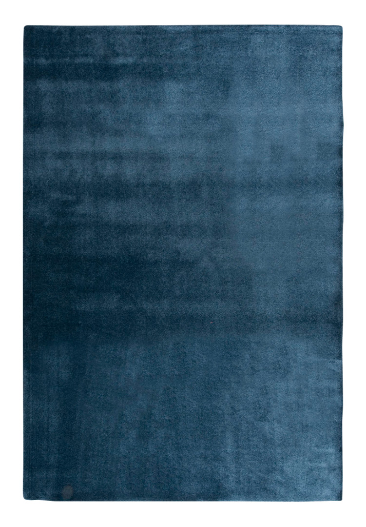VM Carpetin pyöreän Satine-maton sininen matala nukka on ylellisen pehmeä.
