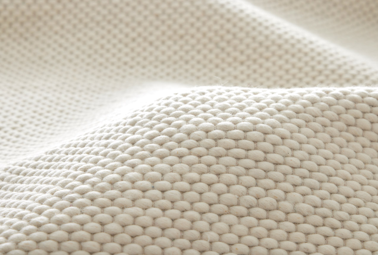Finarten valkoisessa Elisabet-matossa on pompulamainen pinta. Villamatto tuntuu ylellisen pehmeältä jalkojen alla.