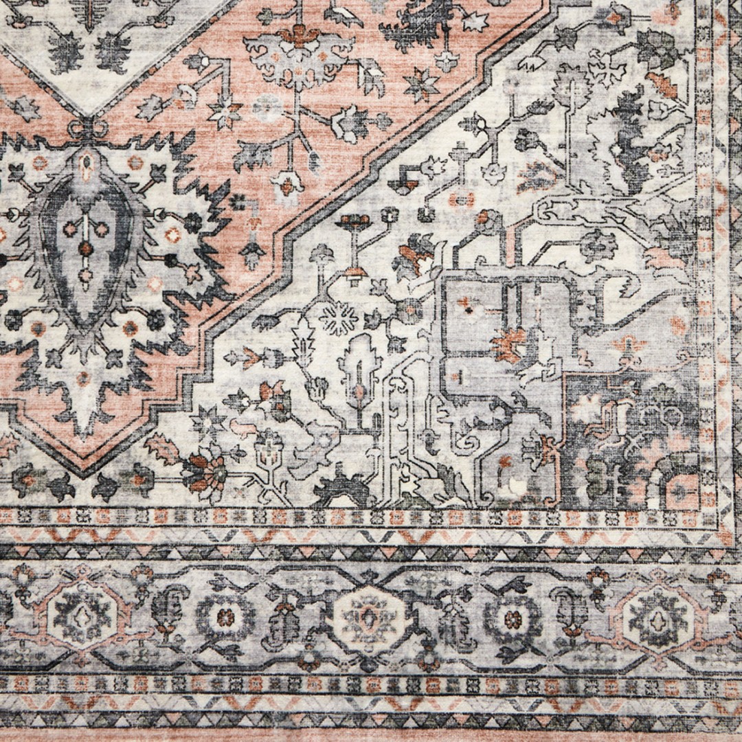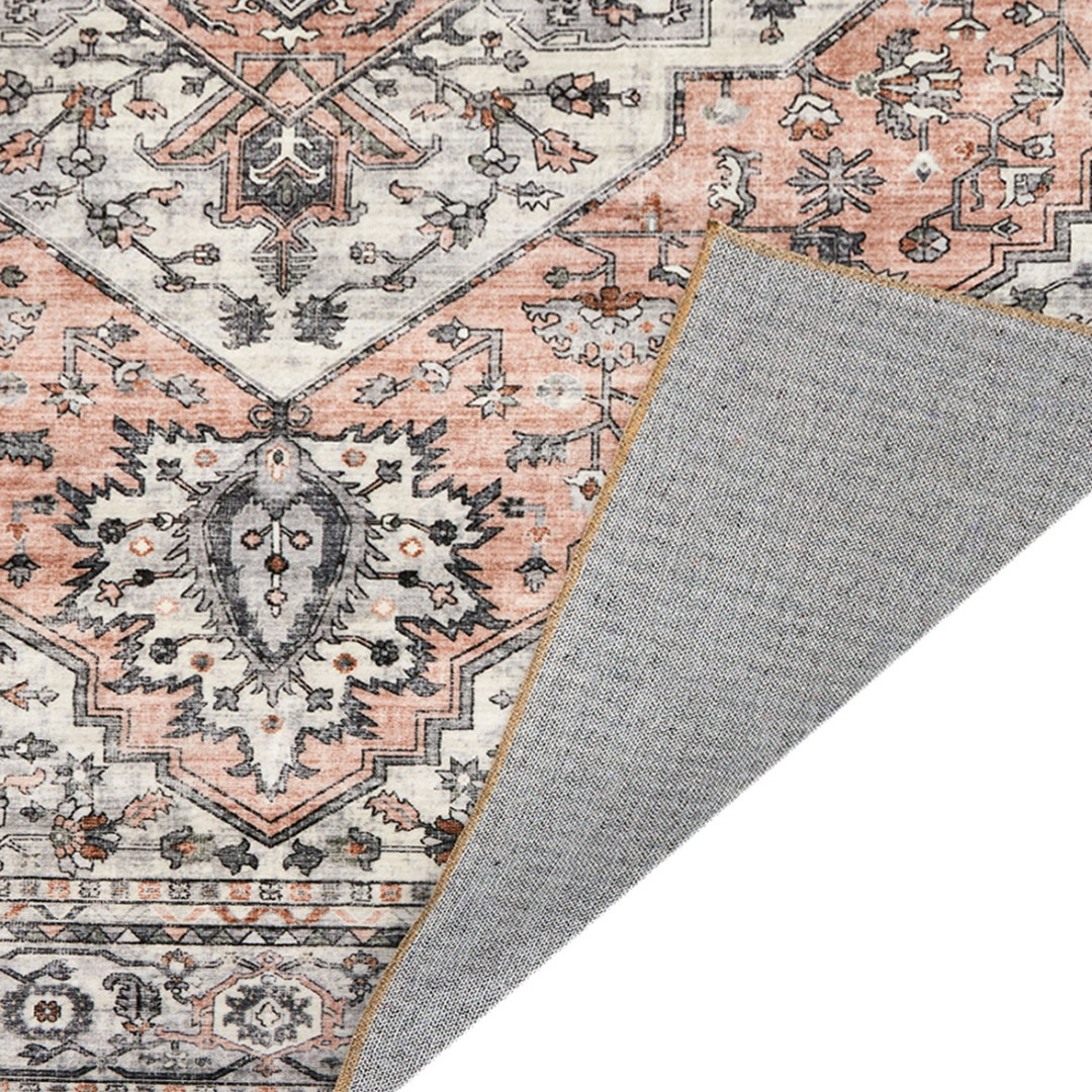 Rosa-valkoinen Ellie-matto on upean värinen ja sisustuksen katseen vangitsija. Maton kuvio on printattu ja se sopii moneen sisustukseen, moderniin tai perinteisempään. Matossa on kiiltoa, riippuen siitä miltä puolelta mattoa katsoo.