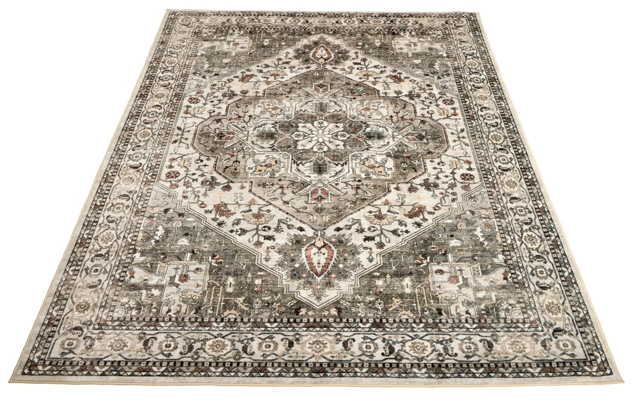 Beige-valkoinen Ellie-matto on upean värinen ja sisustuksen katseen vangitsija. Maton kuvio on printattu ja se sopii moneen sisustukseen, moderniin tai perinteisempään. Matossa on kiiltoa, riippuen siitä miltä puolelta mattoa katsoo.