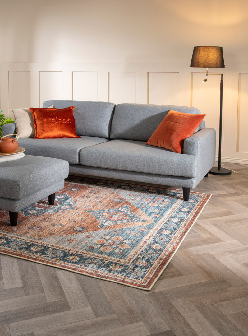 Darissa-maton digiprintattu kuvio tulee kauniisti esille sileäpintaisessa, mutta chenillemäisen pehmeässä matossa. Kaunis itämainen kuviointi ja upea, syvä väritys tuovat ilmettä sisustukseen. Näyttävä matto on loistava valinta olohuoneeseen tai vaikkapa makuuhuoneeseen. Maton suuri koko yhdistää sisustuksen elementtejä yhteen. Kokeile vaikkapa ruokaryhmän alle!